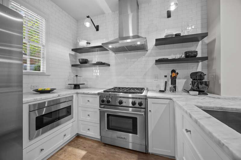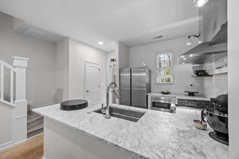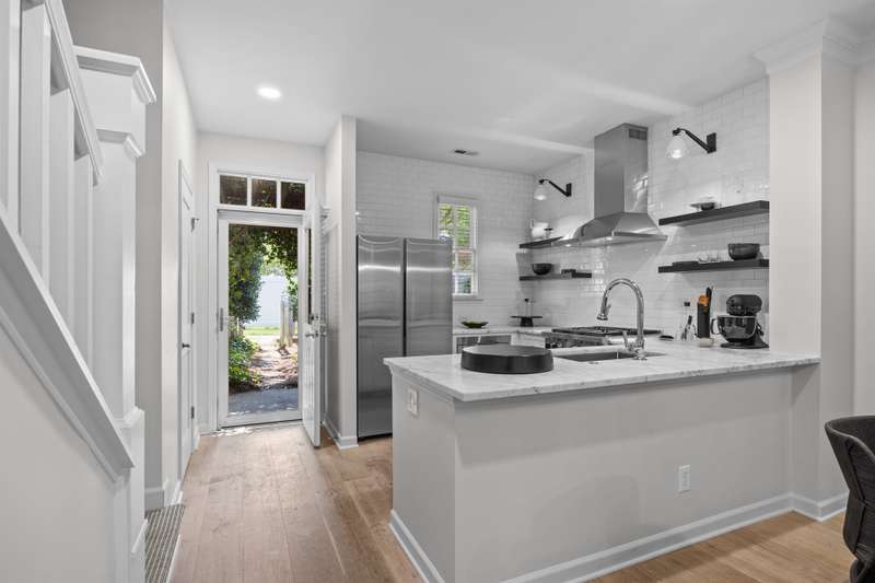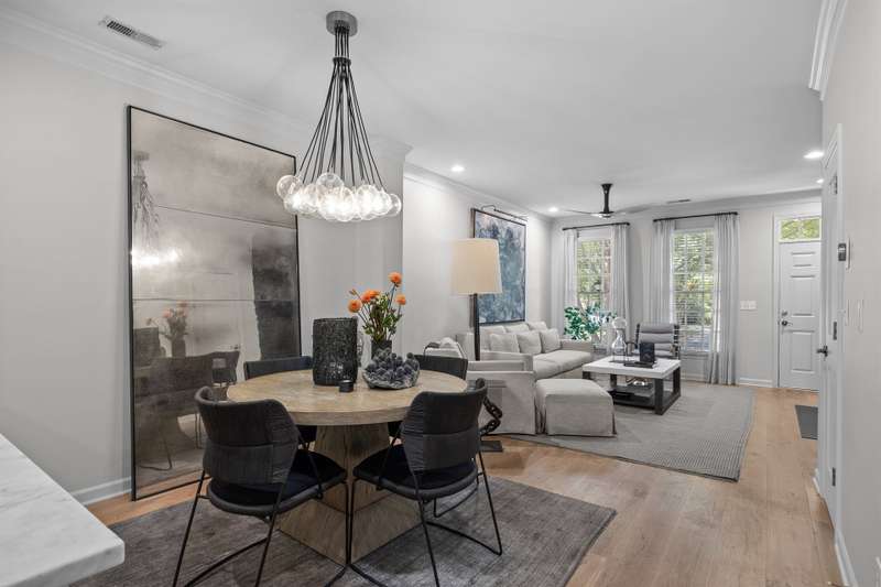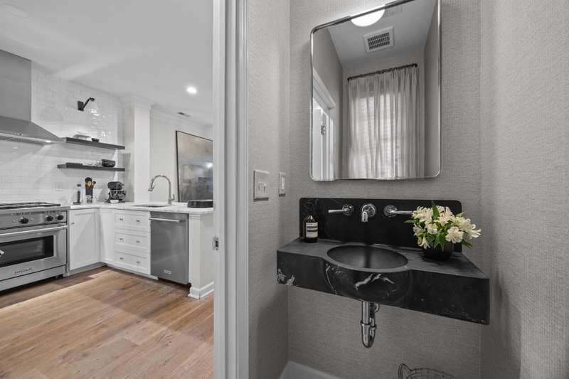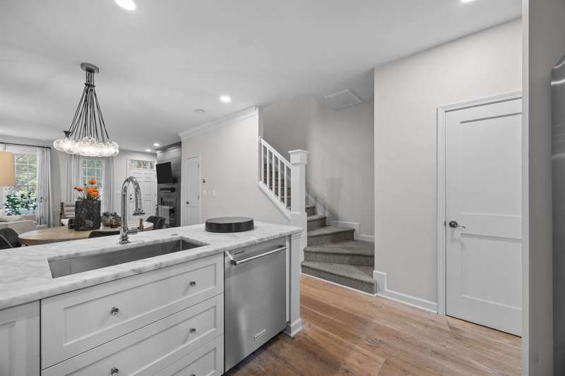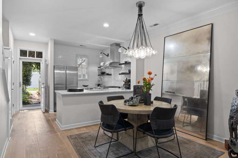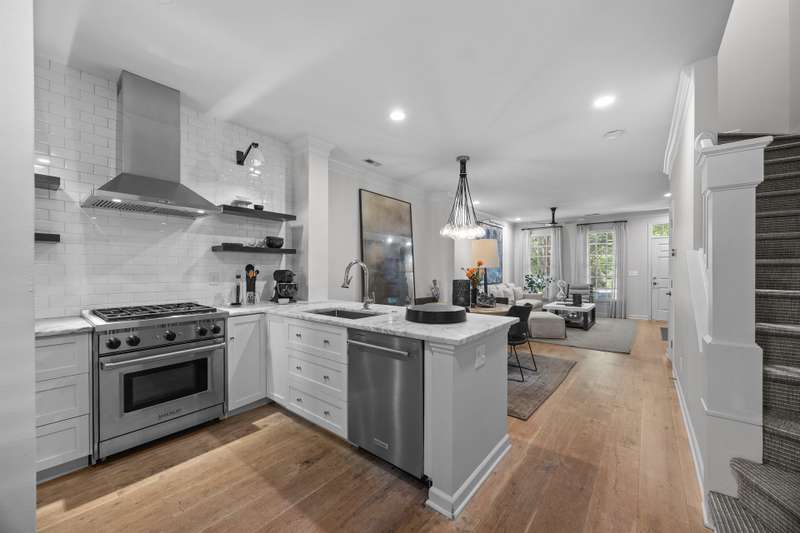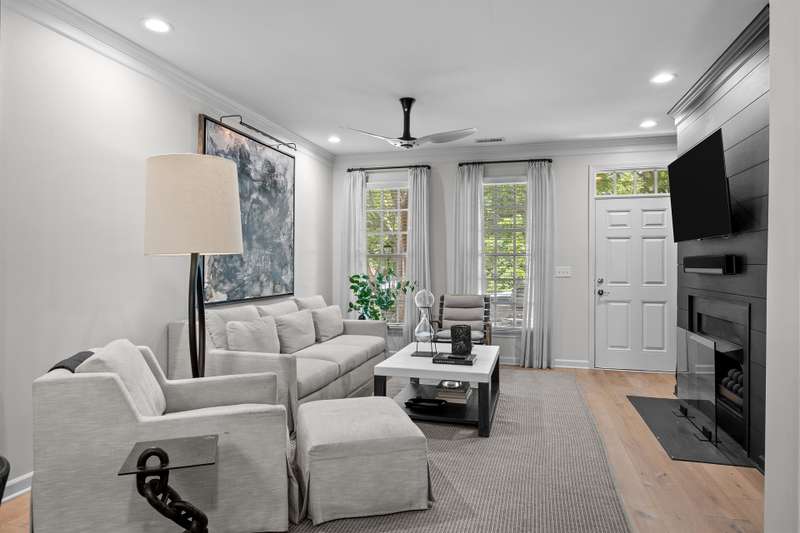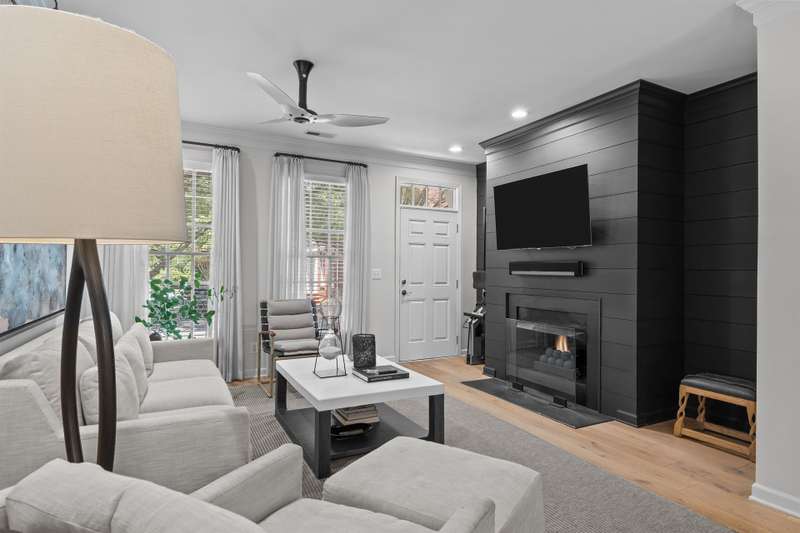 Did you know the average sale price in Davidson is $825,000? That makes this $350,000 townhome a fantastic, affordable opportunity to live in Davidson just a short walk from groceries, shops, restaurants, services, parks, and CSD charter school. What's more, this chic and trendy property includes stylish updates such as high-end wide plank wood floors, textured carpet, remote-controlled fire spheres in the gas fireplace (fire screen remains) white cabinets, marble kitchen counters, and stainless steel appliances, including a Wolfe gas range oven with stainless steel range hood. More savings as the fridge, washer, and dryer remain. The wide open layout features smooth finish ceilings, inset lighting, an updated powder room, and ensuite bathrooms in both upper-level bedrooms. The primary suite has good natural light and features a remote-controlled window shade. The primary bath has tiled floors, and dual sink vanity. The savings continue with low HOA dues only $138 per month.