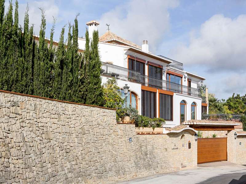 Designed by the prestigious architect Manuel Portaceli, the property has a magnificent style of construction with straight lines and large windows with views, as well as direct access to the sea The two-storey villa has a total area of 719m2 and sits on a spacious plot of 2.893 m2. The ground floor is distributed in a spacious entrance hall, living room with beautiful marble fireplace, large panoramic windows with access to the terrace and garden. It also includes a dining room in the upper part of the living room, a fully equipped design kitchen, a large pantry, a refrigerator, a laundry area with a bathroom and an additional design bathroom. The rest area is on the upper floor to which you can access through a fabulous wooden staircase or the lift. On this floor there are four double bedrooms, all with large windows overlooking the sea and two full bathrooms. The master bedroom includes an en suite bathroom with hot tub and dressing area. Next to the large pool is located the gym and changing rooms with shower. In the front you will find the garden with access to the beach. The villa has marble floors, underfloor heating and air conditioning. In addition, it is completely fenced and has access through electric door with plenty of space to park both in the garage and in the covered parking area. The villa has a privileged location and has been built with high quality materials.