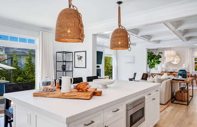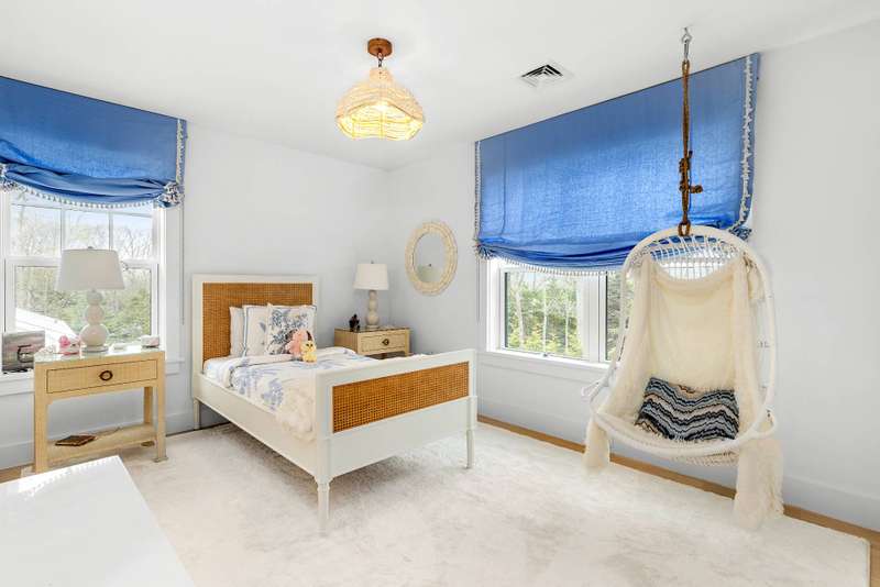 RP241487. Located in Bayview Oaks, a Southampton waterfront community with its own access to Peconic Bay. Bright and airy with an open floor plan, this custom built home with high-end designer furnishings offers 4 bedrooms, plus a large bunk room and 3.5 bathrooms. Living room with fireplace, dining room and gourmet eat-in kitchen have 13+ foot ceilings. With the master bedroom on one side, bunk room and the 3 guest rooms on the other, the layout is ideal. Amenities include radiant heated floors and an attached 2 car garage. Beautifully-landscaped gardens, outdoor kitchen, multiple patios and entertaining spaces. Just a short stroll to the deeded community beach, boat launch. This is a great place to escape or settle down. Close to the village of Southampton, Sag Harbor, Water Mill and Bridgehampton for restaurants, shopping, movie theaters, art galleries, bay and ocean beaches. Available 2025: MD - Jun $40K; MD - July $85K; July $45K, August 1 - 27 $50K Listing ID: 889763