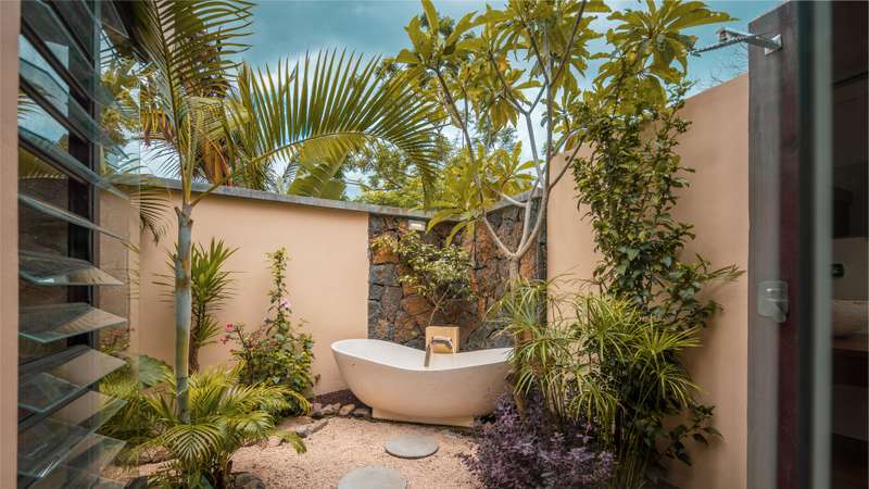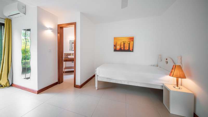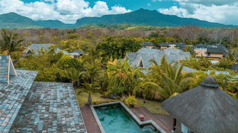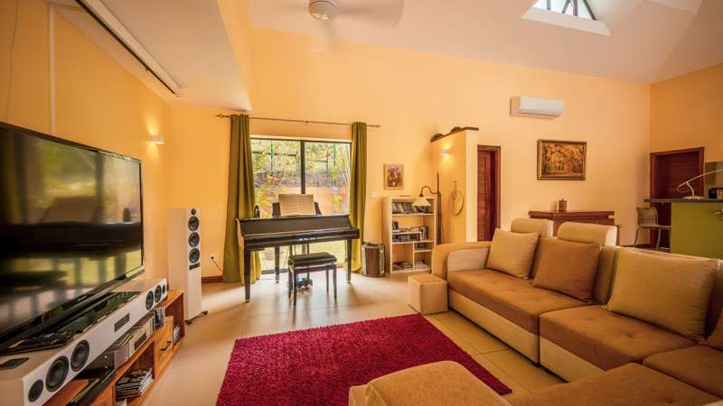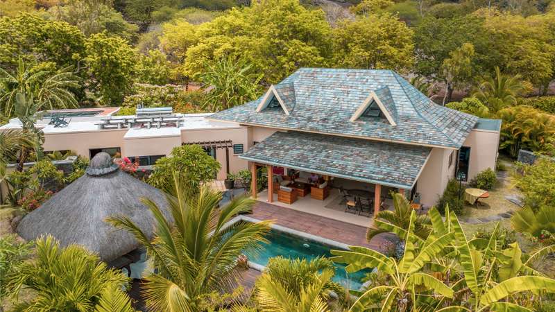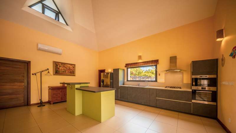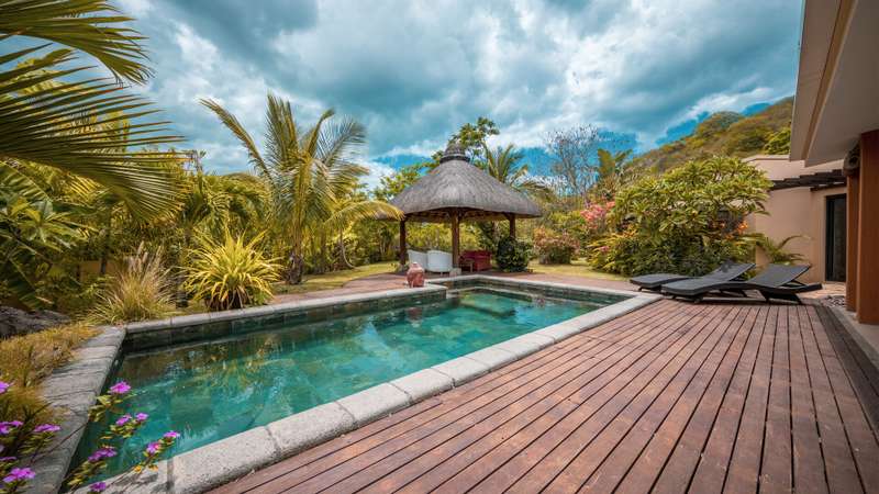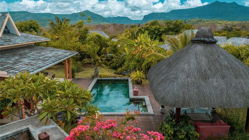 Tucked away amidst the stunning mountains of the west coast of Mauritius, this exquisite Balinese-style villa is a haven of tranquility and tropical charm. Surrounded by lush nature, the home is designed to invite natural light and cooling breezes through its spacious, airy interiors and large openings. The manicured garden, adorned with fruit trees, features a charming kiosk perfect for sundowners by the slate-tiled pool. Offering three luxurious ensuite bedrooms, the villa includes a master suite with an enchanting indoor-outdoor bathroom. A versatile mezzanine serves as an additional bedroom or creative atelier, while a separate studio provides an ideal space for guests or short-term stays. With practical features such as a rare, spacious 44m2 dry basement, a full fledged photovoltaic system, laundry/scullery, BBQ area, and garden shed, this home effortlessly blends beauty with functionality. Embrace the serene elegance of this enchanting retreat.