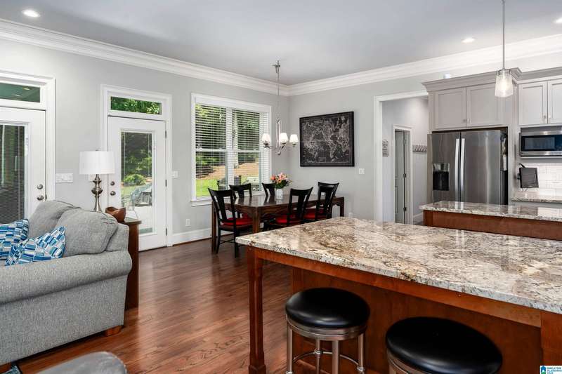 Tucked away in a quiet cul-de-sac, this all-brick home offers plenty of space and comfort inside and out. With a generous lot and mature landscaping, the backyard is truly an extension of your living space, complete with a covered deck and patio perfect for unwinding or gathering with friends. Inside, the open layout flows easily from room to room, making it just as ideal for entertaining as it is for everyday living. The kitchen features a center island, stainless steel appliances, built-in desk nook, and casual dining area, a functional hub for busy mornings or laid-back weekends. The primary suite offers a true retreat with a spacious ensuite, dual vanities, and walk-in closet. Upstairs bonus space makes a great playroom or creative corner, while the finished lower level is packed with possibilities, complete with a bedroom, full bath, kitchenette, and flex space for guests, a home office, or game night central. Just minutes from US-280, I-65, top-rated schools, and shopping.