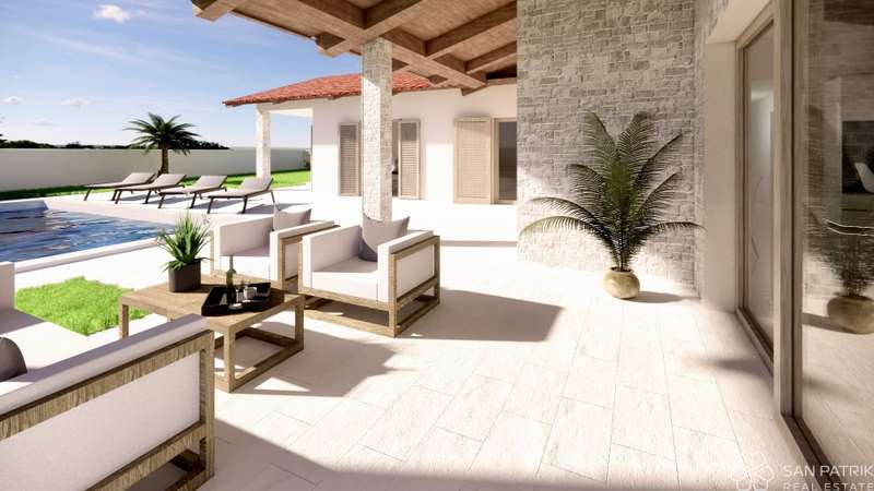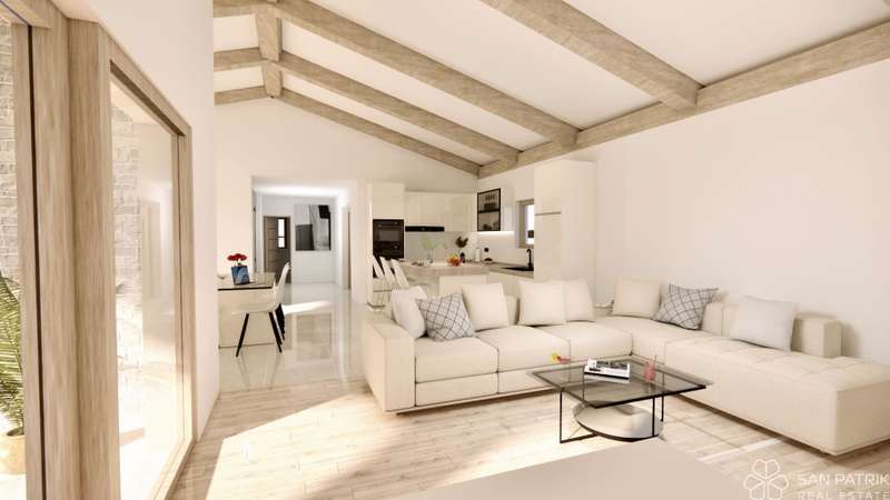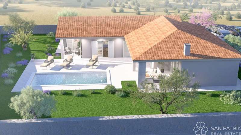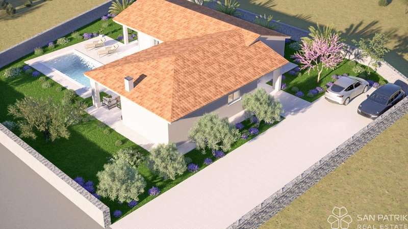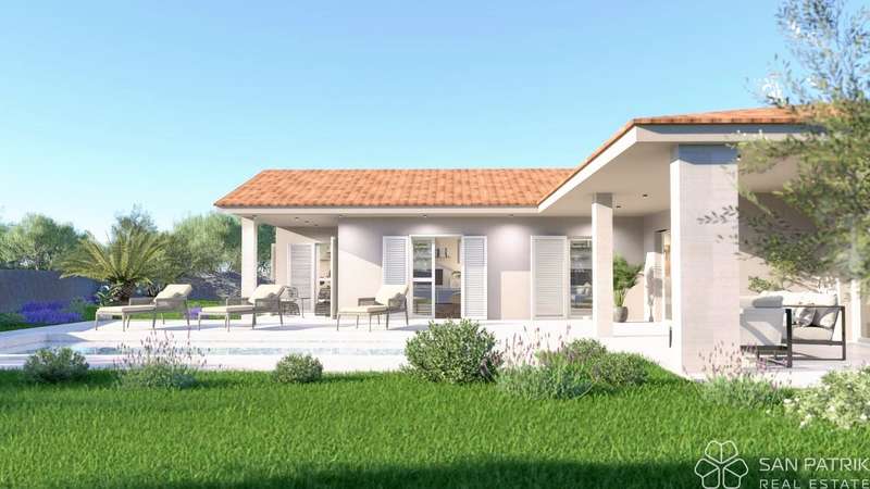 For sale is a modern single-storey house, currently under construction, located in a quiet location, 15 minutes drive from the center of Labin. Surrounded by nature, olive groves and family houses, this property offers privacy and a relaxing atmosphere away from the hustle and bustle of the city.