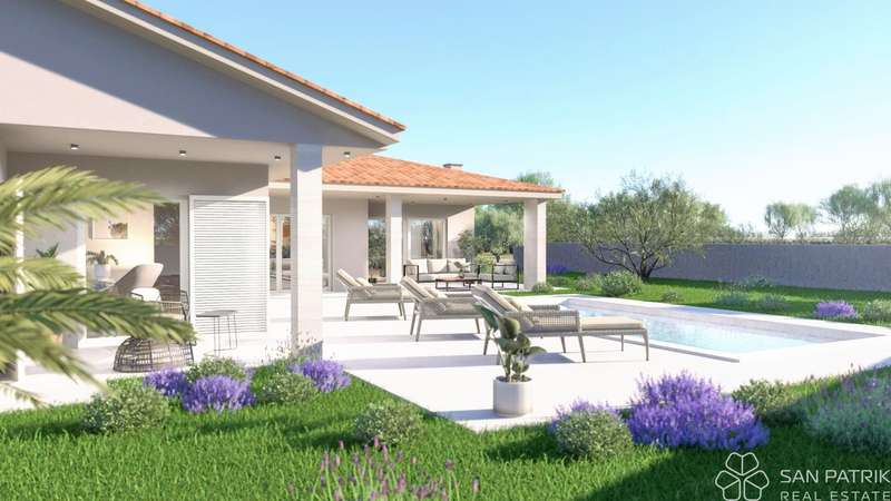 Villa Labin - ground floor - living area 130.45 m2 (3 bedrooms + 2 bathrooms) + 1 terrace + swimming pool with sundeck + garden + 3 parking spaces, on a plot of 915 m2 = 498,000 EUR (unfurnished)