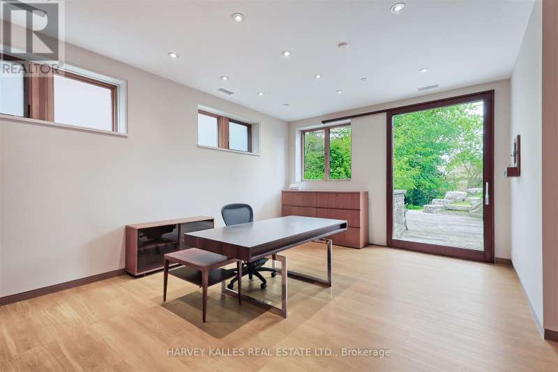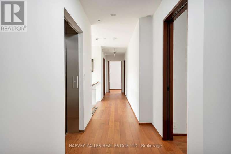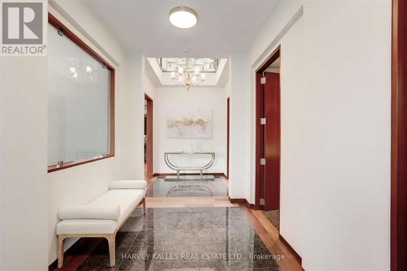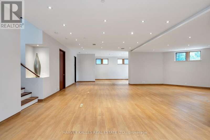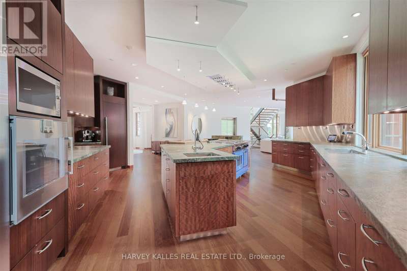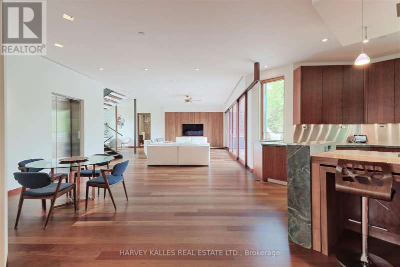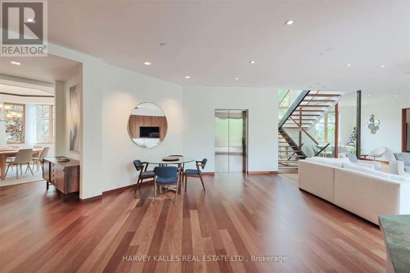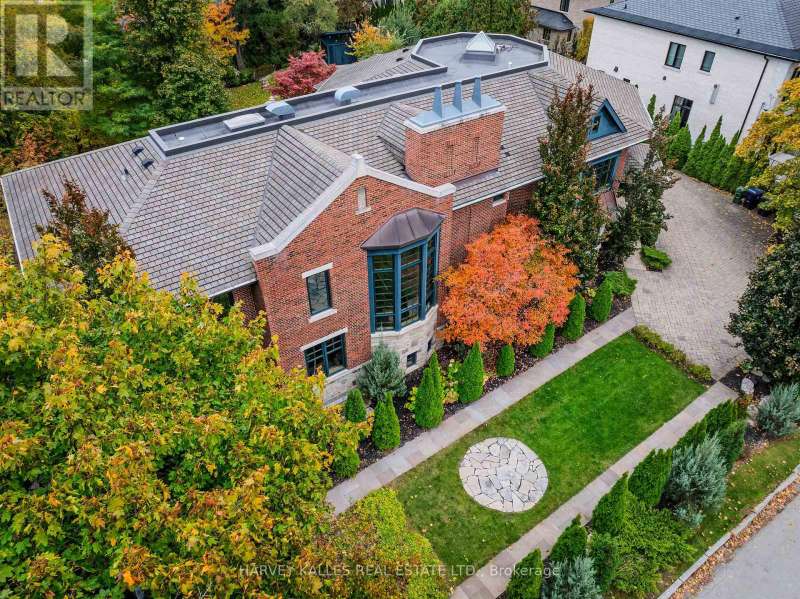 Discover a gem, custom-built as a multi-generational home, offering over 11,000 sq ft of luxurious living space on a rare 125ft double lot at the edge of the Humber Valley in the tree-lined Kingsway neighbourhood. This residence is a statement of contemporary elegance and sophistication, perfect for the discerning family.Inside, experience clean lines and exquisite details that enhance comfortable luxury living, including sound-isolated suites, Jatoba hardwood floors, stunning Persian serpentinite kitchen countertops, and heated stone floors for ultimate comfort.Accessibility is a key feature, with snow melt for the front porch, steps, ramp and driveway, a commercial 4x6 ft elevator, and 4 ft wide hallways to ensure effortless movement throughout the residence.The ground floor features a bright, open-plan living area that seamlessly integrates the chefs kitchen, dining, and living spaces, extending to a partially covered upper deck with a 17ft wide opening. A heated 3-car garage is cleverly positioned at the side of the house.The primary retreat is where luxury meets tranquility, featuring two generous walk-in closets and two ensuites one complete with a massage room and whirlpool tub offering tree-top views. Two additional spacious bedrooms, each with walk-in closets, share a thoughtfully designed bathroom suite with dual sinks, ample storage, and a separate area for added privacy. The oversized fourth bedroom also includes its own ensuite bathroom and walk-in closet, providing comfort and convenience for family or guests.The ground floor bedroom suite with a Juliet balcony offers a perfect retreat for guests.Venture to the finished lower level, where 10+ ft ceilings create a light and airy ambiance.This expansive space features a wide sliding door leading to the lower deck, ideal for entertaining.With multiple entertainment areas, including a stepped home theatre and sprawling park-like backyard, this home is designed for those who appreciate spacious comfort. (id:6370)