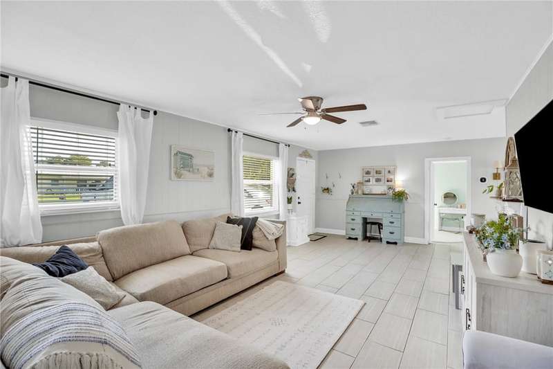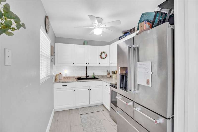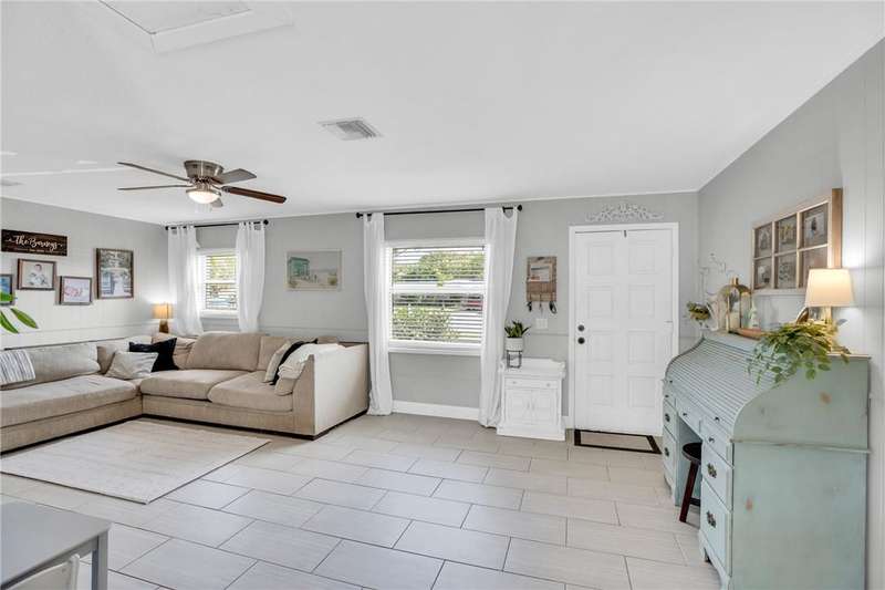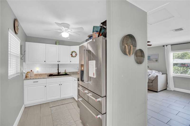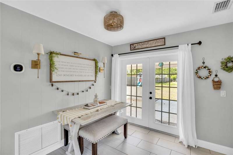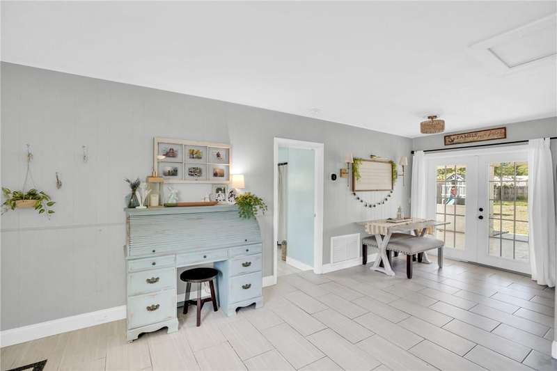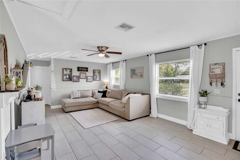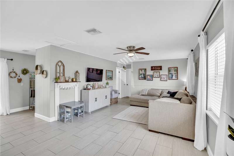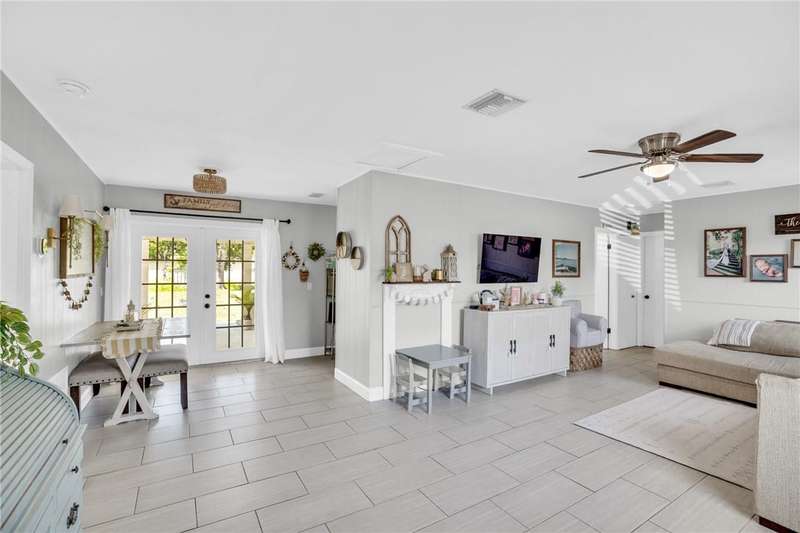 Adorable, move-in ready, 3 bed, 1 bath home in non-HOA community! Complete home renovation in 2018/19. Tile throughout living areas, bathroom, and primary bedroom. Luxury vinyl in guest bedrooms. Open floor plan, with split bedrooms. Kitchen with stainless appliances, white cabinetry, and farmhouse sink. French doors lead to the spacious covered back porch overlooking a large backyard. Outside laundry room accessed by back porch. Large 23x10 ft attached storage/utility room on rear of home for extra storage. No community restrictions, so bring your toys. AC 2021, HWH 2024. rmszappr&subtoerr