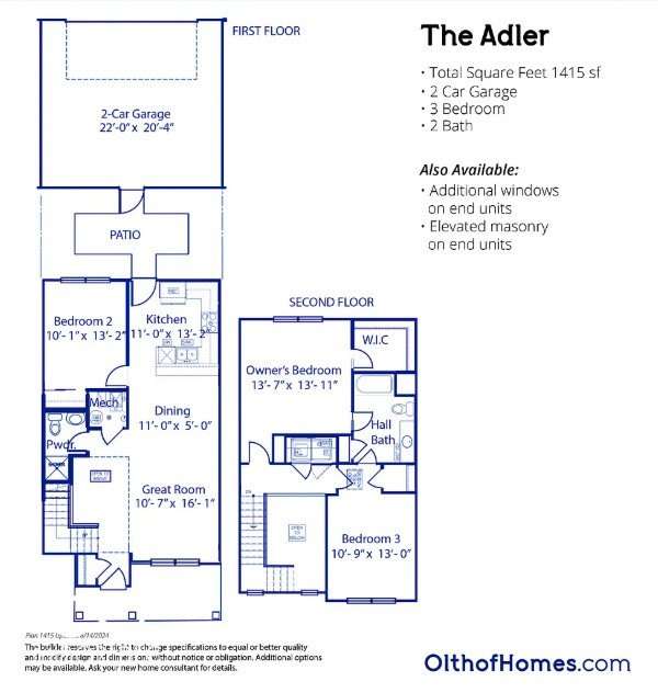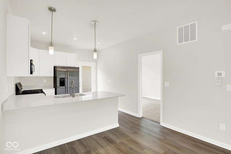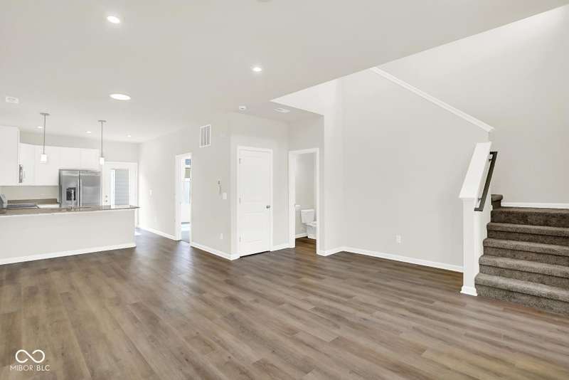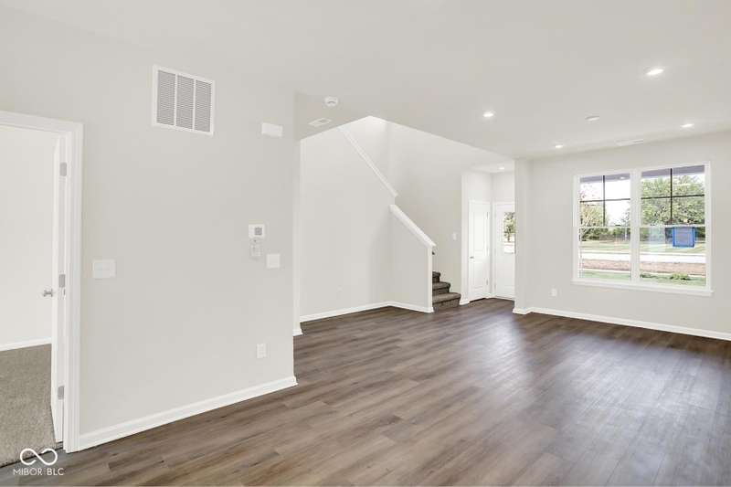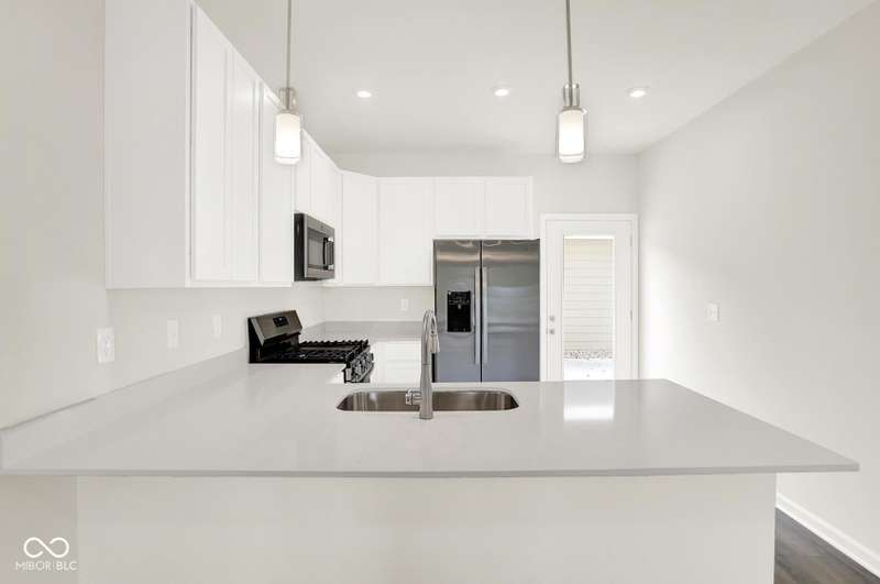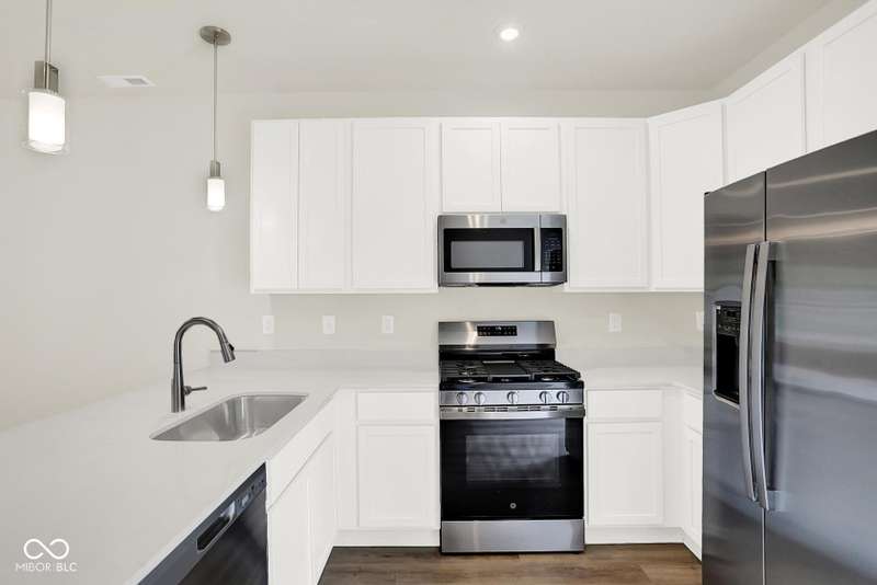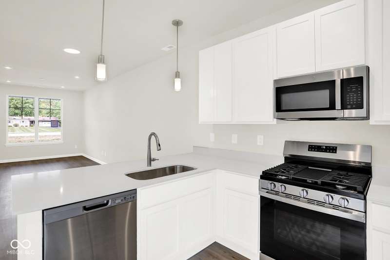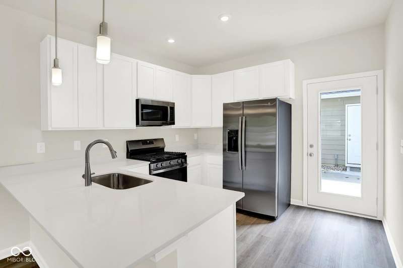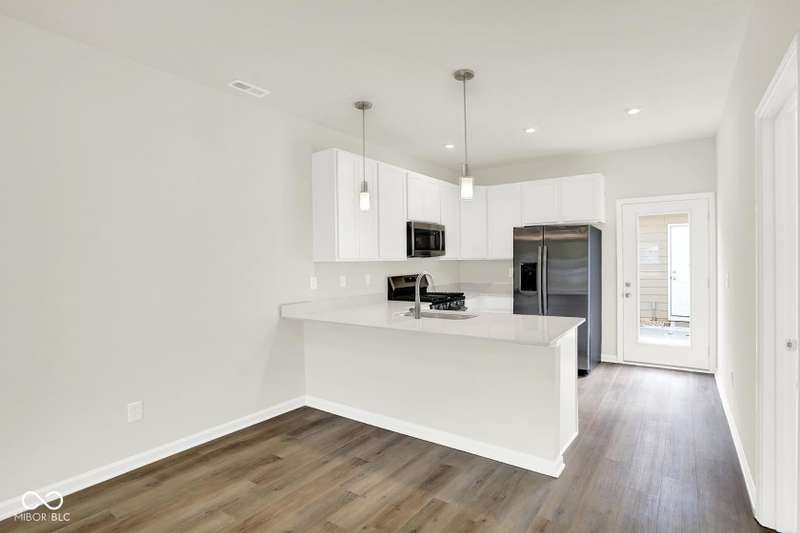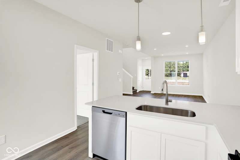 This 3 bedroom Adler is available now! The open concept End-Unit, with main floor w/9' ceilings offers plenty of natural light and the perfect space to make your own. You'll love your new kitchen w/42" White cabinets, quartz countertops, and kitchen appliances including the refrig. The main floor bedroom and a walk-in shower in the powder bath add convenience for a guest room, family member, or home office space. The 2nd floor features a generous sized owners' bedroom with walk in closet, bathroom and a 2nd bedroom. Includes Luxury vinyl plank flooring throughout the main living area and upgraded carpet on the 2nd floor. A Ring doorbell, and low maintenance landscaping w/irrigation make this home complete. Enjoy peace of mind with the 10-year structural and 4-year workmanship on the roof warranties along with an industry best customer care program.
