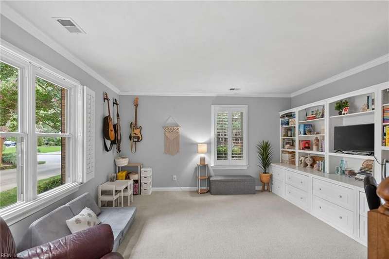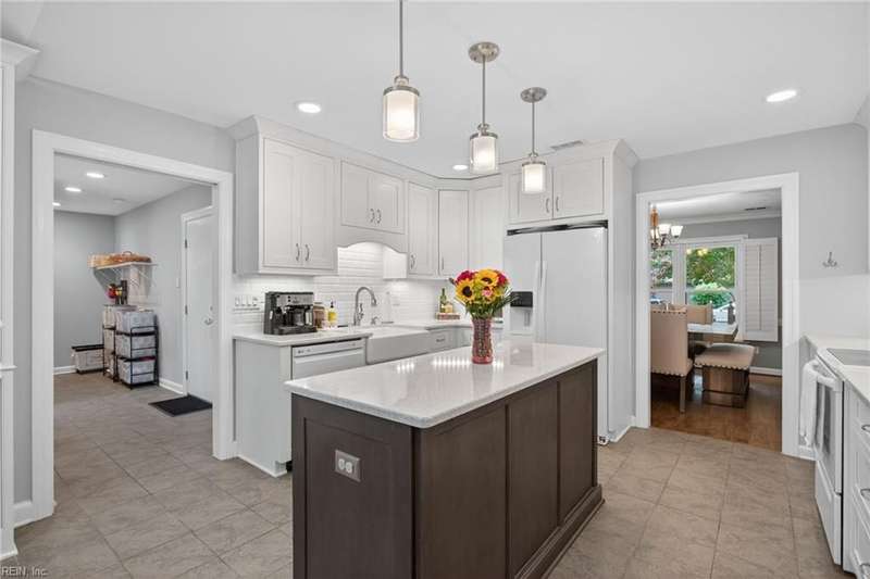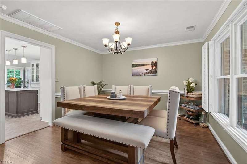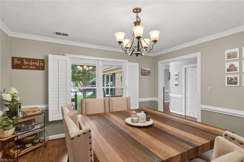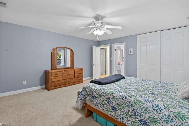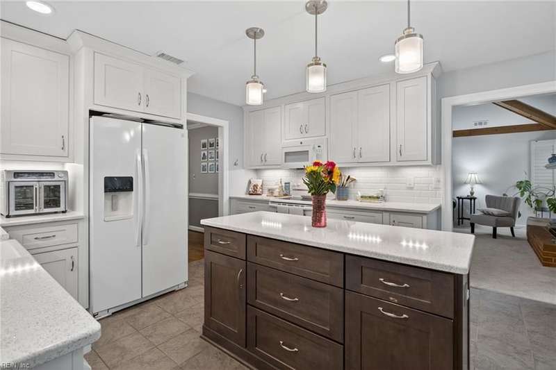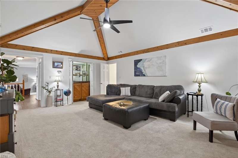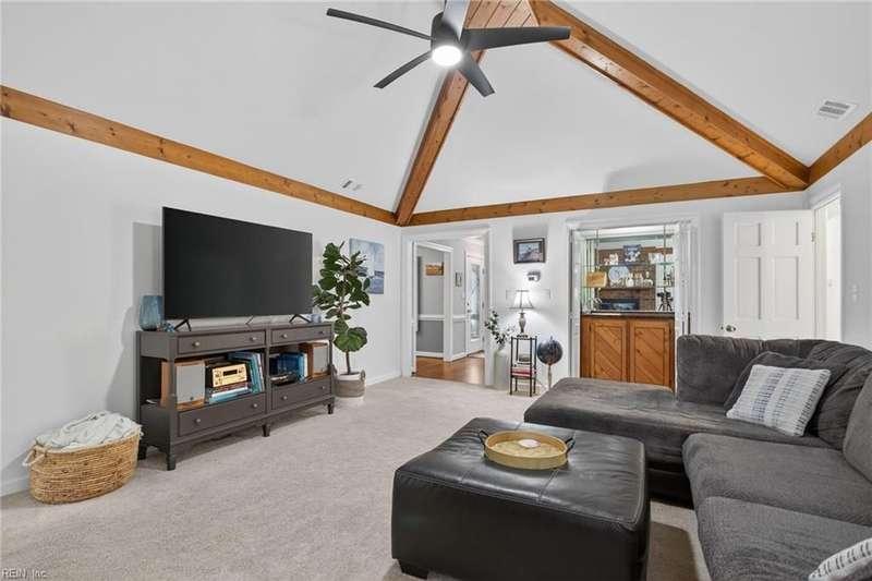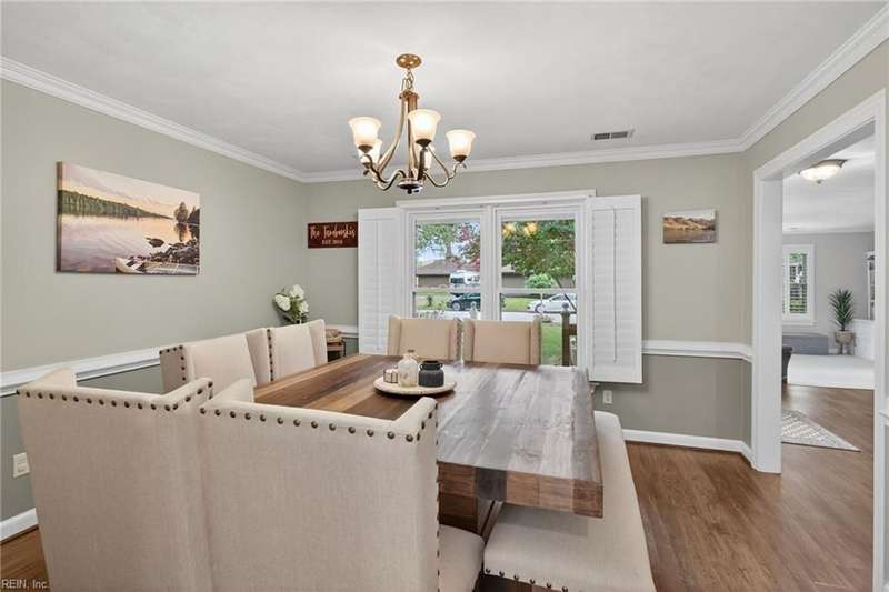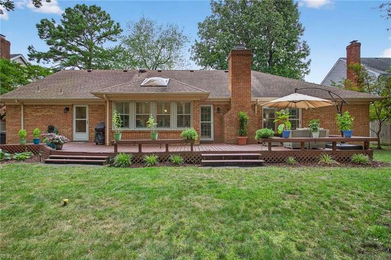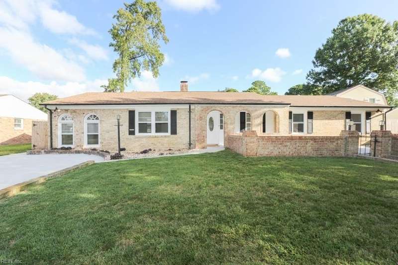 Beautifully updated brick ranch in the heart of Fairfield! This 4-bedroom, 2.5-bath home offers an exceptional blend of space, comfort, and style. The flexible floor plan features a huge great room perfect for entertaining or working from home, a family room with vaulted ceilings and wood-burning fireplace, formal dining room, and an eat-in kitchen. The private primary suite opens directly to the expansive back deck overlooking the fenced yard. Recent updates include roof, windows, HVAC, kitchen, baths, flooring, gutters, deck, fence, and sprinkler system. A two-car garage plus oversized driveway provides abundant parking. Convenient to interstates, Regent University, shopping, and dining, this home offers a rare combination of quality, flexibility, and location!