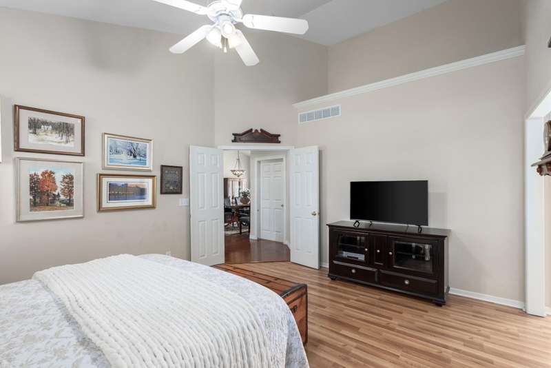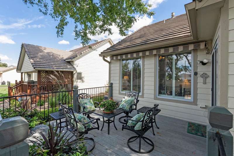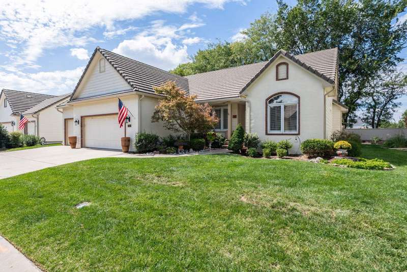Located in the highly sought-after community of Crest Ridge, within the Crestview Mile, this home offers golf cart access leading to Crestview Country Club. Step inside to discover timeless details including plantation shutters, crown molding, vaulted ceilings, and hardwood floors. The formal dining room and sunny breakfast nook create inviting spaces for gathering, while the kitchen is equipped with stainless steel appliances, an eat-in island, and abundant counter space. A large laundry room with a pantry adds everyday convenience. The primary suite features a built-in dresser, an oversized walk-in closet, and a spacious bathroom with dual sinks and a soaking tub. An additional bedroom and full bathroom on the main level are perfect for guests. The inviting living room with a fireplace offers additional relaxation space. The finished basement is ideal for entertaining, complete with a dry bar, fireplace, large bedroom, bathroom, generous storage, and an additional finished room. A cedar closet adds bonus and functionality. The oversized three-car garage provides ample space for vehicles along with room to spare for a golf cart. Outdoors, the beautifully landscaped backyard features a composite deck with a retractable awning - an ideal spot to enjoy your morning coffee or relax in the evenings. Conveniently located near all Wichita has to offer and within the desirable Andover School District, this home combines elegance, comfort, and location.