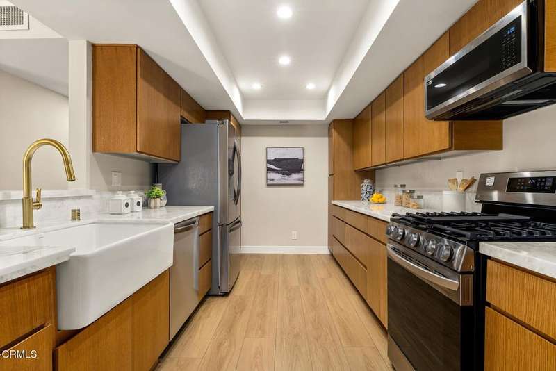 Beautifully updated 2-bedroom, 2-bath condo in one of Sherman Oaks' most sought-after buildings. The open layout fills the home with natural light and creates an easy sense of flow, perfect for both relaxing and entertaining.The remodeled kitchen features sleek cabinetry, upgraded appliances, and a built-in coffee bar that feels both elevated and practical. New flooring, fresh paint, recessed lighting, and a new electrical panel bring a clean, modern touch throughout.Generous closets and a private storage unit provide plenty of room for everything you need. The location puts you steps from the best of Sherman Oaks, including Whole Foods, Erewhon, and Pavilions, with countless cafes and restaurants just around the corner.A polished and move-in-ready home that delivers comfort, convenience, and great energy in the heart of the Valley.