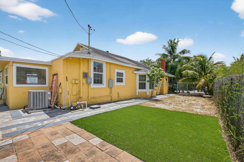 This charming home is a 3bed/3bath with numerous updates including impact windows, restored wood floors, all new kitchen, lighting, new bathrooms plus much more. Tropical landscape leads you into a cozy front porch, then a welcoming foyer, on to the spacious living room that boasts a beautiful fireplace and archway into the dining area with bay windows, then on to the gourmet kitchen and a huge utility room. The main bedroom is on the 1st floor with an en-suite bathroom, bedroom 2 is also an en-suite and has a private entrance, perfect for an in-law suite or income studio, bedroom 3 is upstairs with a huge walk-in closet. The yard is an outdoor oasis with multiple lounging areas, paver patios, artificial turf and fully fenced with lots of parking. Close to beaches and PBI airport. Hurry!