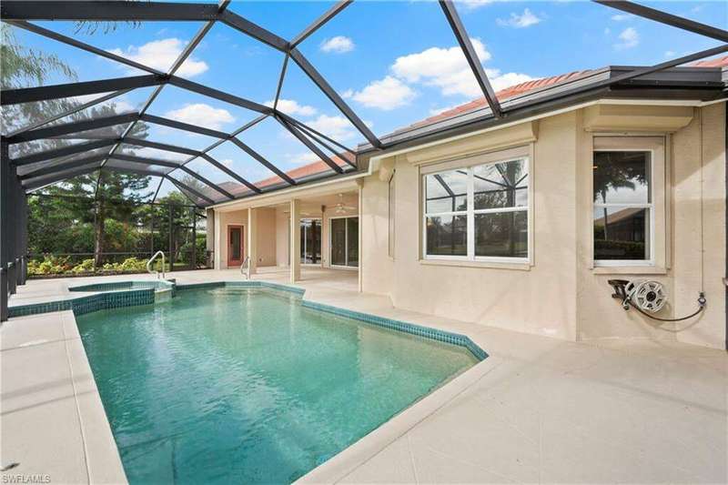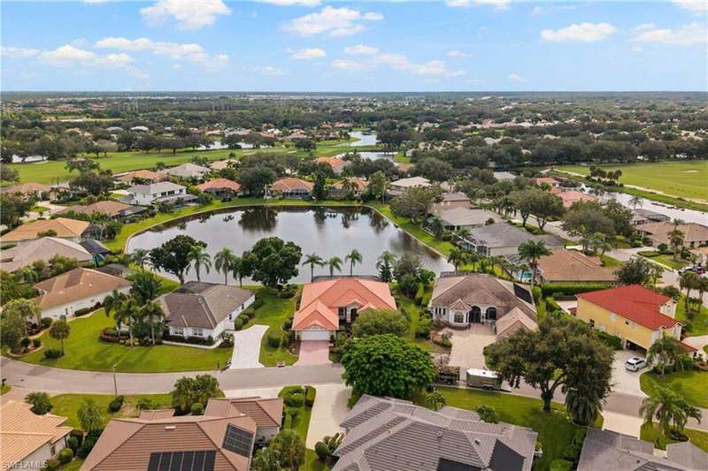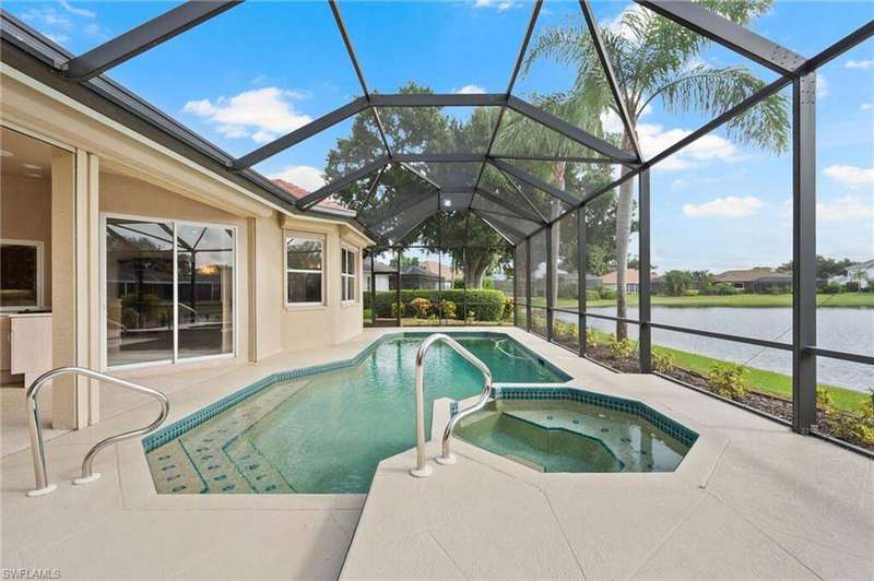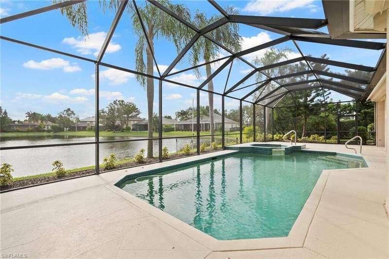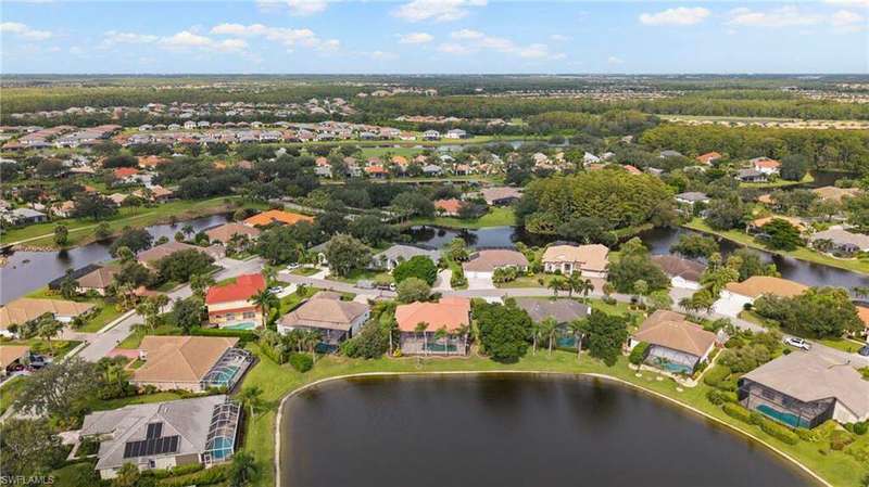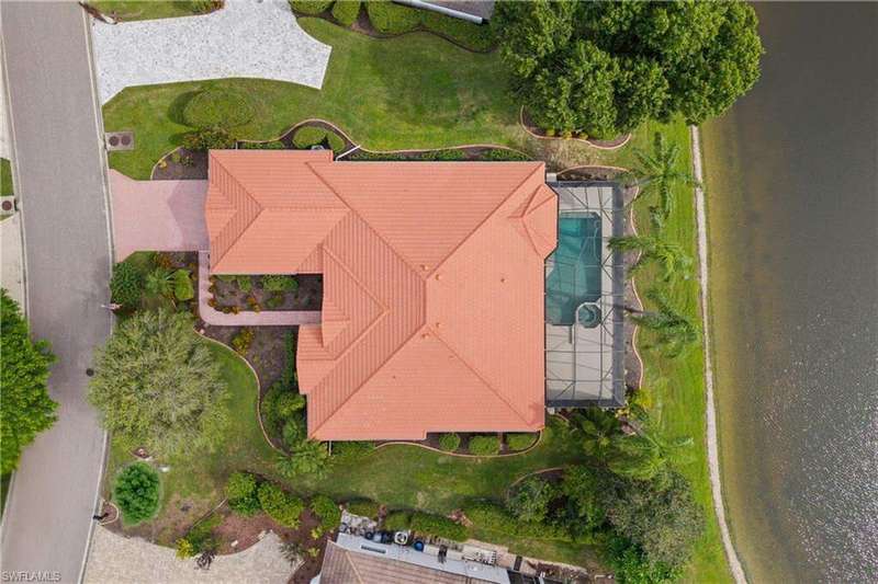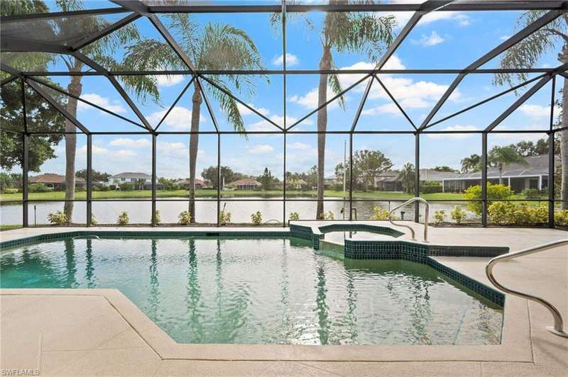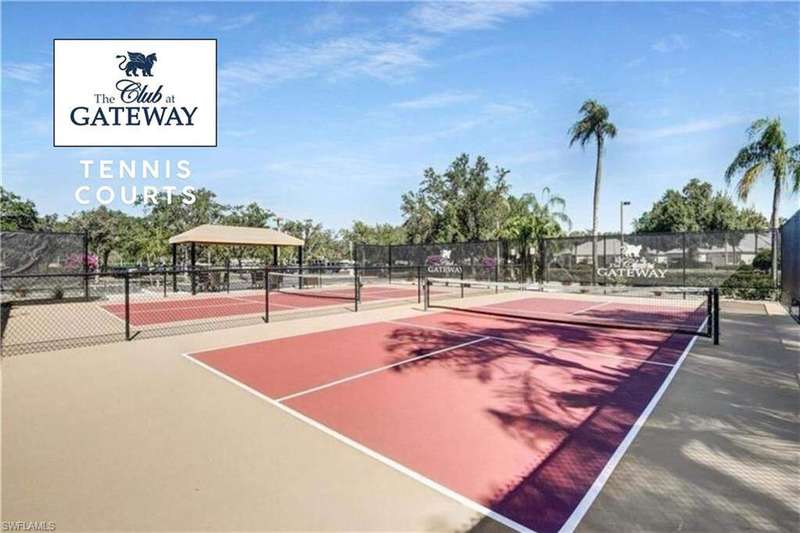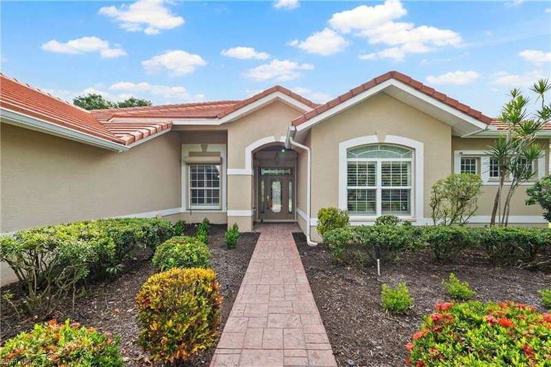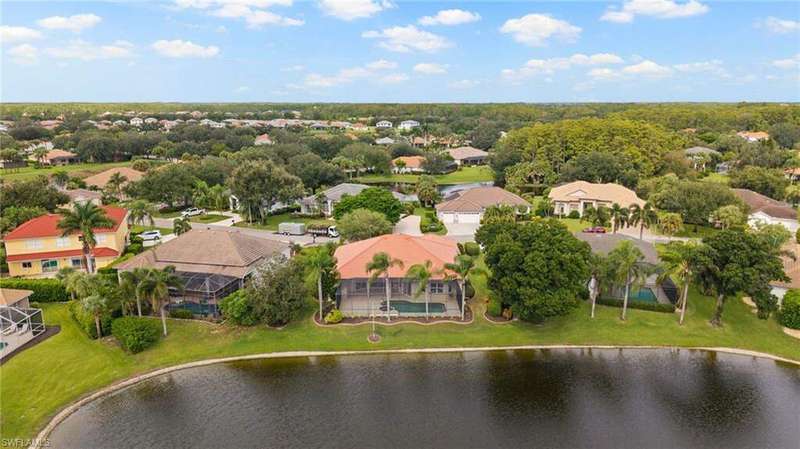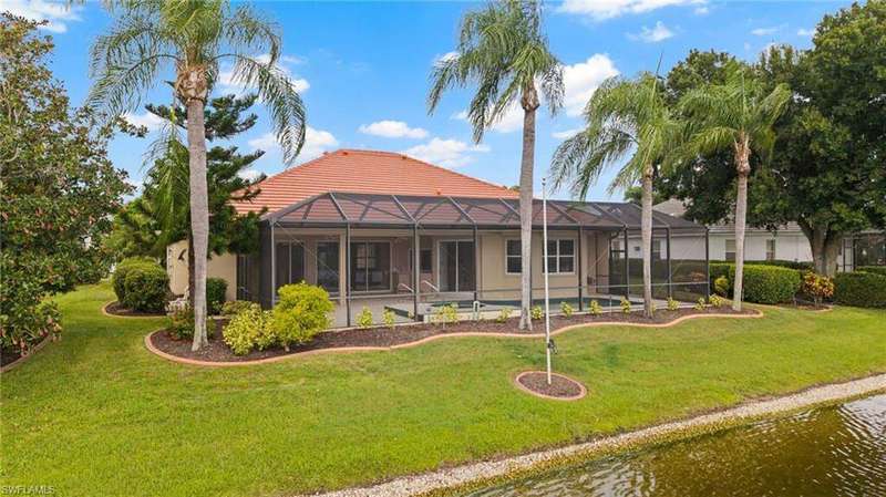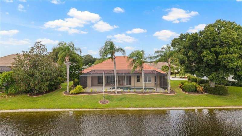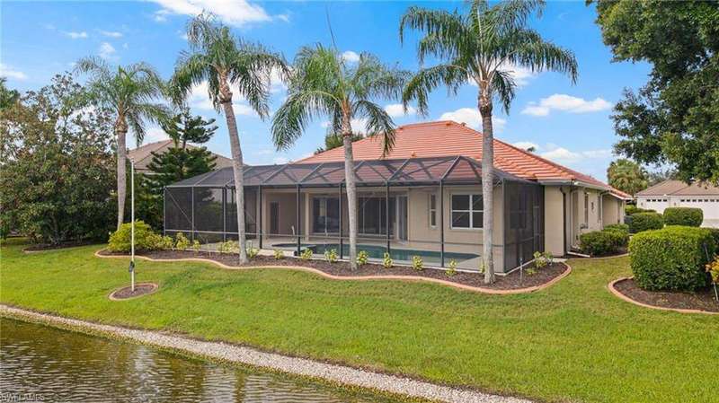 Lakefront Pool + Spa Home with Volume Ceilings and a Sprawling Primary Suite. Custom-Built in 1997, this one-owner home has been treasured and meticulously maintained, but is now ready for you to make it your own. Starting outside, there is a NEW ROOF and SCREEN ENCLOSURE (2018), gorgeous bottle brush tree in the front yard, and well-established landscaping with matching concrete edging around the entire perimeter. The window and door openings are protected with motorized roll-down storm shutters for your safety and peace of mind. Stepping inside, you'll first notice the view of the lake through the sliding glass doors, and then the volume ceilings with multiple transitions and trim detailing. The entire home is outfitted with a Vantage Lighting System with automations that control multiple lights and zones of the house at once. There's even an "AWAY" button to turn off every light in the house with the push of one single button! (Now that's what I call luxury!) As you enter, the primary suite, guest half bath and home office are to your right... the dining room, kitchen, family room and guest bedrooms are to your left. Each space is well proportioned and maximizes the lake views and natural light. The kitchen has ample counter space with a desk, built-in pantry, center island and a pass-through window to the lanai where you'll find an outdoor sink, mini fridge and counter space (perfect for holiday gatherings!) The pool deck is stamped concrete, fully screened, and equipped with a pool bathroom for ultimate convenience. Situated on a quiet street within the gated community of Gateway Greens, this home and its surroundings are serene. Gateway Greens is a private enclave within the master-planned Gateway community in Fort Myers, featuring golf course views, walking paths, and beautiful tree-lined streets. With quick access to I-75, RSW Airport, JetBlue Park, shopping, dining, and top schools, this highly desirable location offers both convenience and charm-imagine all the ways you can make it your own!
