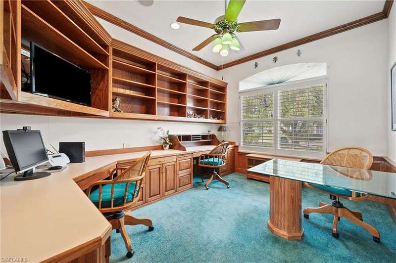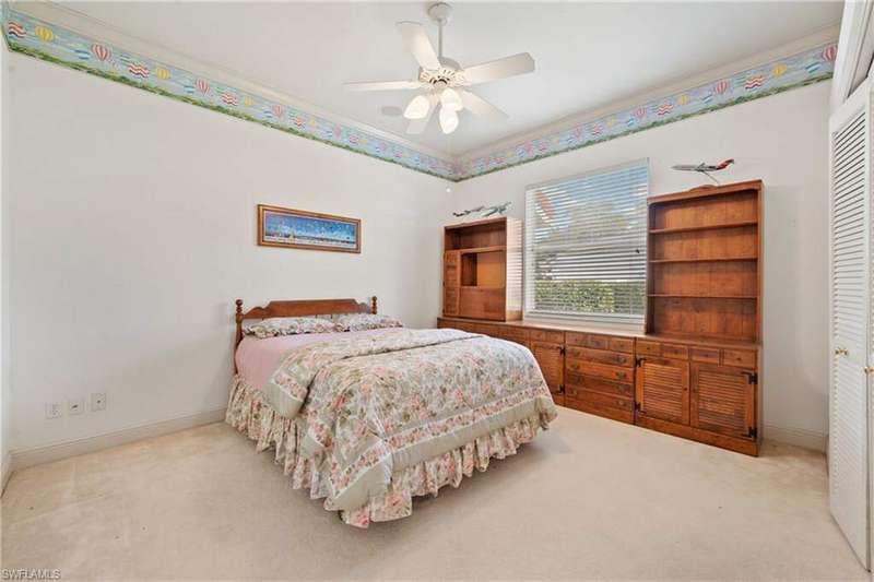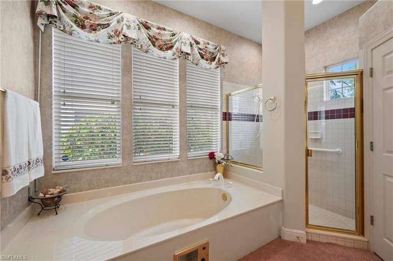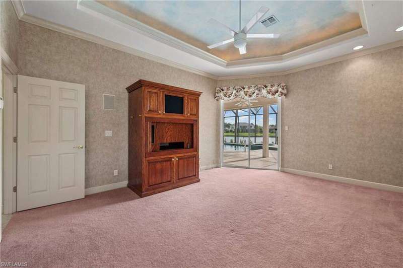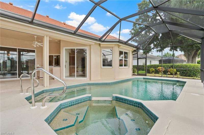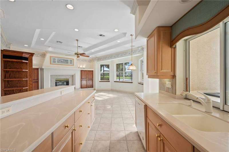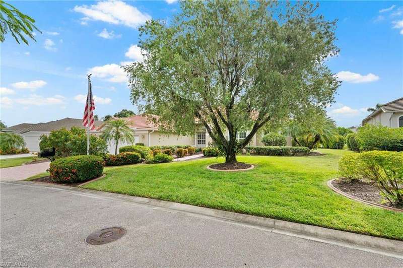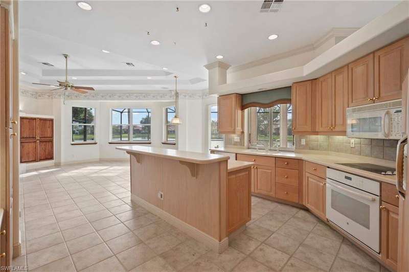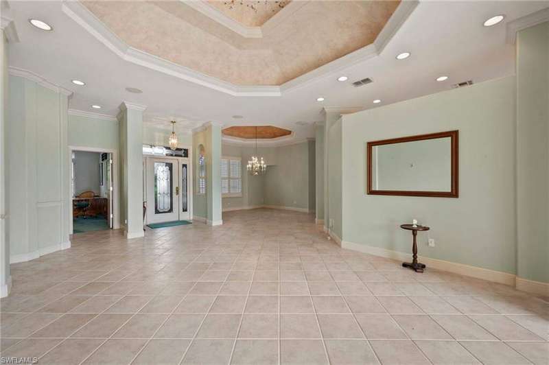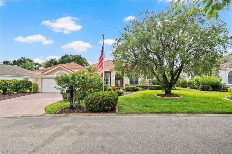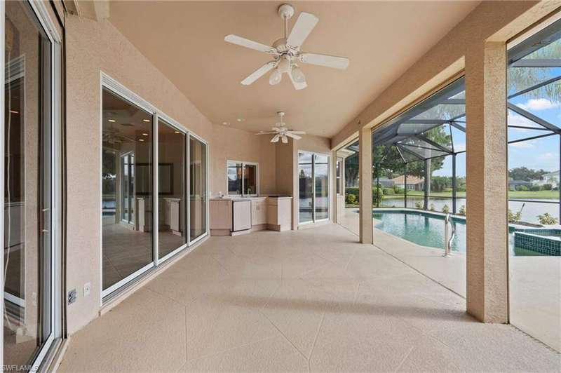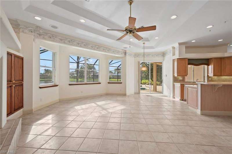 Lakefront Pool + Spa Home with Volume Ceilings and a Sprawling Primary Suite. Custom-Built in 1997, this one-owner home has been treasured and meticulously maintained, but is now ready for you to make it your own. Starting outside, there is a NEW ROOF and SCREEN ENCLOSURE (2018), gorgeous bottle brush tree in the front yard, and well-established landscaping with matching concrete edging around the entire perimeter. The window and door openings are protected with motorized roll-down storm shutters for your safety and peace of mind. Stepping inside, you'll first notice the view of the lake through the sliding glass doors, and then the volume ceilings with multiple transitions and trim detailing. The entire home is outfitted with a Vantage Lighting System with automations that control multiple lights and zones of the house at once. There's even an "AWAY" button to turn off every light in the house with the push of one single button! (Now that's what I call luxury!) As you enter, the primary suite, guest half bath and home office are to your right... the dining room, kitchen, family room and guest bedrooms are to your left. Each space is well proportioned and maximizes the lake views and natural light. The kitchen has ample counter space with a desk, built-in pantry, center island and a pass-through window to the lanai where you'll find an outdoor sink, mini fridge and counter space (perfect for holiday gatherings!) The pool deck is stamped concrete, fully screened, and equipped with a pool bathroom for ultimate convenience. Situated on a quiet street within the gated community of Gateway Greens, this home and its surroundings are serene. Gateway Greens is a private enclave within the master-planned Gateway community in Fort Myers, featuring golf course views, walking paths, and beautiful tree-lined streets. With quick access to I-75, RSW Airport, JetBlue Park, shopping, dining, and top schools, this highly desirable location offers both convenience and charm-imagine all the ways you can make it your own!