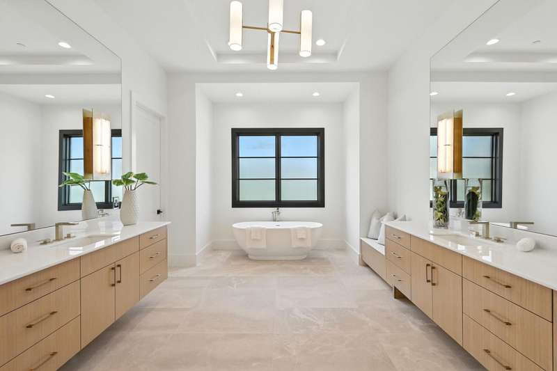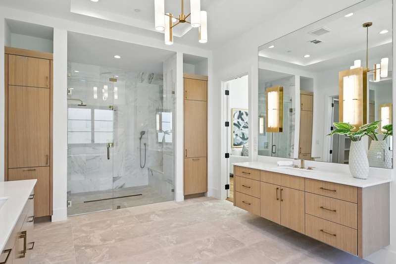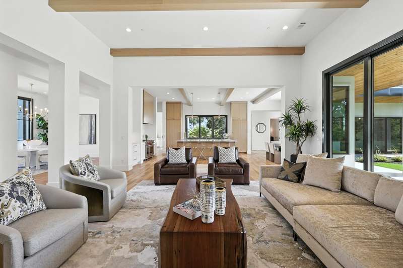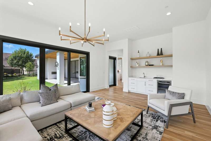 Welcome Home to this brand new, gorgeous Calais Custom Home. Nestled in the quiet, back part of the prestigeous Old Grove neighborhood, this modern home offers an unparalleled living experience, exceptional floor plan, light and bright finishes and a spacious backyard for you to create your backyard dream oasis. As you enter the impressive steel and glass pivot front door, you are greeted with 21 foot soaring ceilings, walls of windows, gorgeous wood floors and open plan living. Blending luxurious finishes with modern design, this home features highest end Wolf and Subzero appliances, stone countertops, designed hardware and plumbing fixtures, and white oak floors. The open-concept offers a large Family - Breakfast - Chef's Kitchen with huge island with quartizite counters, for family and friends to enjoy. Step into the Game Room with wet bar with sliding doors to the oversized backyard, covered patio and serene views.The dream Primary Retreat features lovely backyard view, a lavish spa bath and expansive closet. 2nd Primary suite is also downstairs. Upstairs offers 3 large Bedrooms with en-suites and walk-in closets, plus a Exercise Room, Loft and Bonus space. As you head into the backyard, you find a large veranda, complete with a with cozy fireplace for year-round enjoyment, and surrounded by exquisite landscaping and mature trees that enhances the home's secluded ambiance. Home also boasts an Executive Study, Prep Kitchen, large Laundry room, tons of storage, a spacious 4 car garage. This is a truly extraordinary residence, and a rare combination of privacy, elegance, and functionality.