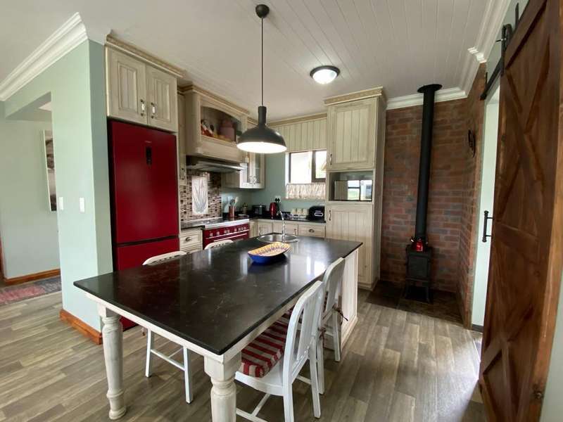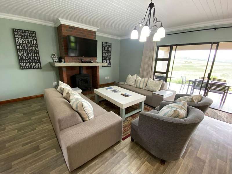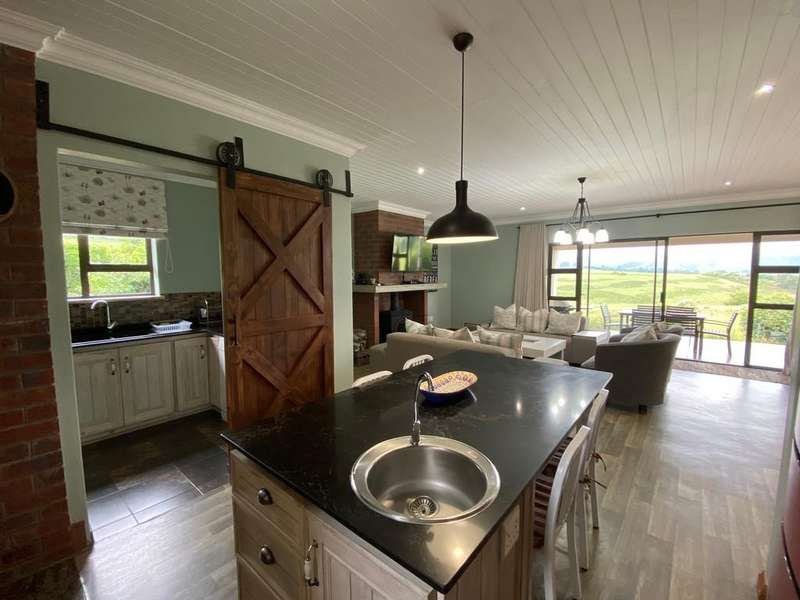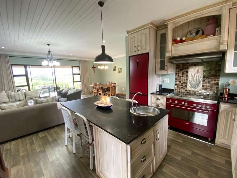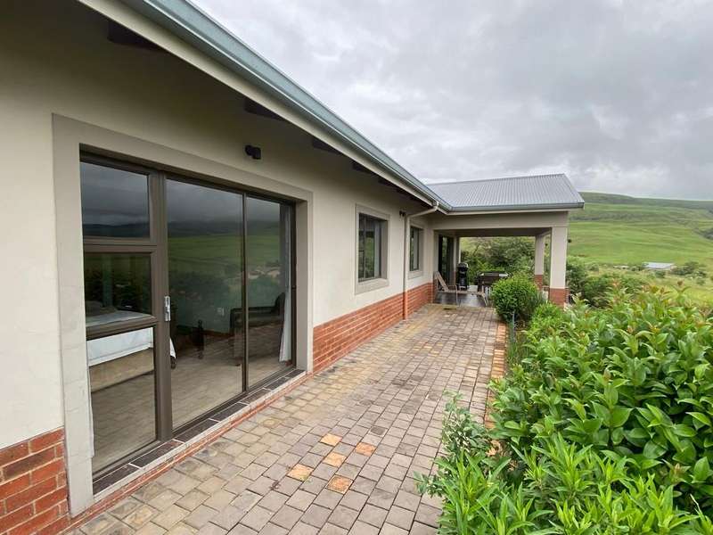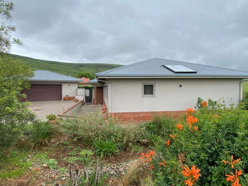 Sold fully furnished and equipped, with modern finishes. This gorgeous home is nestled between breath taking mountain views in a secure eco estate. Enjoy wildlife right on your doorstep. The house boasts 4 bedrooms with built in cupboards, 2 full bathrooms ( 1 en suite ), a guest toilet and an open plan living/dining area with a Morso fireplace for those cold winter days in the berg. The kitchen has granite counter tops a well sized island, an Elba gas oven and hob and a scullery area fitted with a dishwasher as well as a washing machine. There is even a second fireplace in the kitchen. Sliding aluminum framed glass doors open up to a covered patio where you can braai and entertain while enjoying the peace and quite that naature offer with the Drakensberg staring right at you. The main bedroom suite has ample closet space and a full bathroom with heated towel rails. Wake up to the Drakensberg greeting you through the sliding glass doors, while drinking coffee in bed. With three more guest bedrooms, a full family bathroom and a guest toilet there are more that enough space for your family and guests. The walled courtyard has a double outside basin and a washing line and connects the kitchen to the double garage and a servants bathroom with a toilet, shower and basin. The extra-large double lock-up garage has an automated double garage door. The property has a DSTV dish as well as an alarm system. A low two strand electric fence surrounds the property to keep the animals from devouring the well-established garden, without compromising the closeness to nature. Great opportunity for long term as well as short term rental income for holiday accommodation ie. Airbnb. Cathkin Estate is a secure eco estate that spans over 1000 hectares of grasslands, forests and streams, making it the largest game reserve in the Drakensberg. Development cover less than 5% of the estate. It is home to indigenous species of fauna and flora, most notably the endangered Oribi antelope. Enjoy nature by hiking or mountain biking or even casting a line in one of many trout filled dams. The estate is access controlled and the villages and the electric fence line that surrounds the entire estate is patrolled. Contact me if you are interested to make this magnificent house, your home.