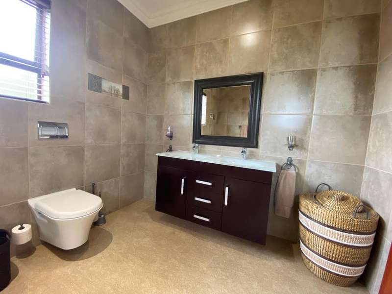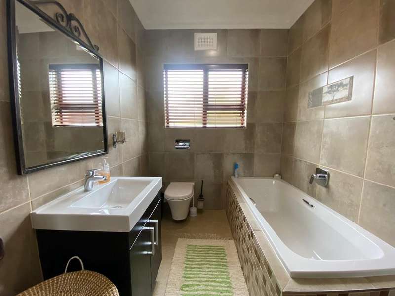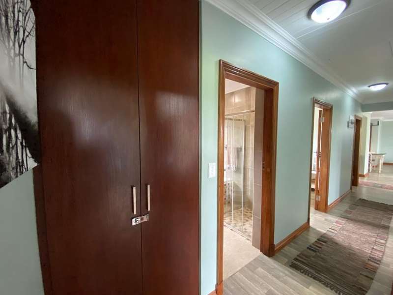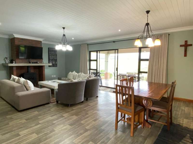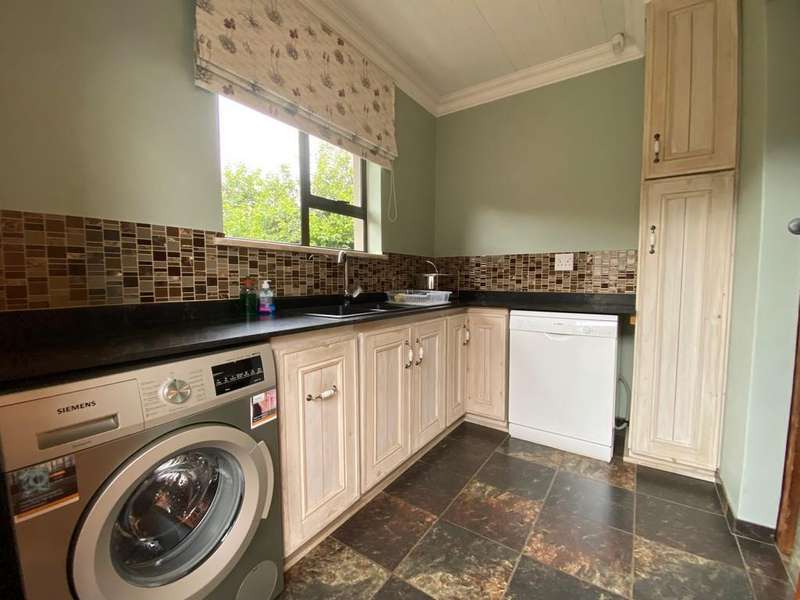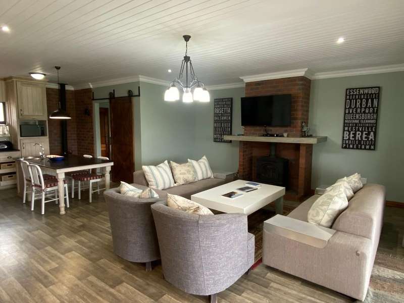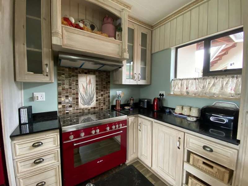 Sold fully furnished and equipped, with modern finishes. This gorgeous home is nestled between breath taking mountain views in a secure eco estate. Enjoy wildlife right on your doorstep. The house boasts 4 bedrooms with built in cupboards, 2 full bathrooms ( 1 en suite ), a guest toilet and an open plan living/dining area with a Morso fireplace for those cold winter days in the berg. The kitchen has granite counter tops a well sized island, an Elba gas oven and hob and a scullery area fitted with a dishwasher as well as a washing machine. There is even a second fireplace in the kitchen. Sliding aluminum framed glass doors open up to a covered patio where you can braai and entertain while enjoying the peace and quite that naature offer with the Drakensberg staring right at you. The main bedroom suite has ample closet space and a full bathroom with heated towel rails. Wake up to the Drakensberg greeting you through the sliding glass doors, while drinking coffee in bed. With three more guest bedrooms, a full family bathroom and a guest toilet there are more that enough space for your family and guests. The walled courtyard has a double outside basin and a washing line and connects the kitchen to the double garage and a servants bathroom with a toilet, shower and basin. The extra-large double lock-up garage has an automated double garage door. The property has a DSTV dish as well as an alarm system. A low two strand electric fence surrounds the property to keep the animals from devouring the well-established garden, without compromising the closeness to nature. Great opportunity for long term as well as short term rental income for holiday accommodation ie. Airbnb. Cathkin Estate is a secure eco estate that spans over 1000 hectares of grasslands, forests and streams, making it the largest game reserve in the Drakensberg. Development cover less than 5% of the estate. It is home to indigenous species of fauna and flora, most notably the endangered Oribi antelope. Enjoy nature by hiking or mountain biking or even casting a line in one of many trout filled dams. The estate is access controlled and the villages and the electric fence line that surrounds the entire estate is patrolled. Contact me if you are interested to make this magnificent house, your home.