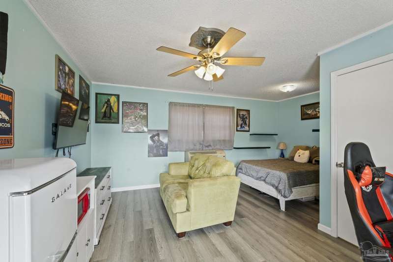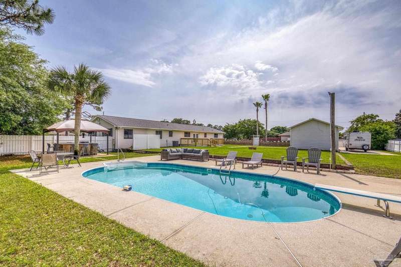 BACK ON THE MARKET DUE TO NO FAULT OF THE SELLER! This beautifully maintained 2,106 sq ft conventional, site-built home-not manufactured or modular-sits on a spacious .69-acre corner lot. It offers the fantastic blend of functionality, flexibility and long term value with 3 bedrooms, 2 bathrooms, a 2-car garage and a detached garage that has an adjoining flex space. The home is full of thoughtful features-including an assumable loan and a flooring allowance offered by the motivated sellers. Built in 1991, the main home features light wood-look LVP flooring in the living areas and plush carpet in the bedrooms. A flexible bonus room makes a great home office, gym, or playroom. The bright kitchen includes white cabinetry, stainless steel appliances, and a breakfast bar ideal for casual dining. The large laundry room adds everyday convenience, while the spacious primary suite features room for a sitting area and a private ensuite bath. The detached studio style space is close to the pool and would be fantastic for a hobbyist, craft enthusiast, or someone looking to create a custom man cave. It even comes fully equipped with a shower, its own hot water heater and a garage space. Outside, enjoy your own backyard oasis with an in-ground saltwater pool, poolside bar, wooden deck, and patio-fantastic for relaxing or entertaining. The full sprinkler system keeps the lush lawn and landscaping vibrant, a riding lawnmower is included with the purchase of the property, and a private RV pad with electrical hookup sits discreetly behind fencing in line with HOA guidelines. A storage shed adds even more functionality. Located in a resort-style community with a golf course, pool, game room, playground, and more. It's even close enough to bike to the intermediate school. This corner-lot gem offers peaceful living, exceptional outdoor space, and lifestyle-enhancing amenities-all ready to welcome you home.