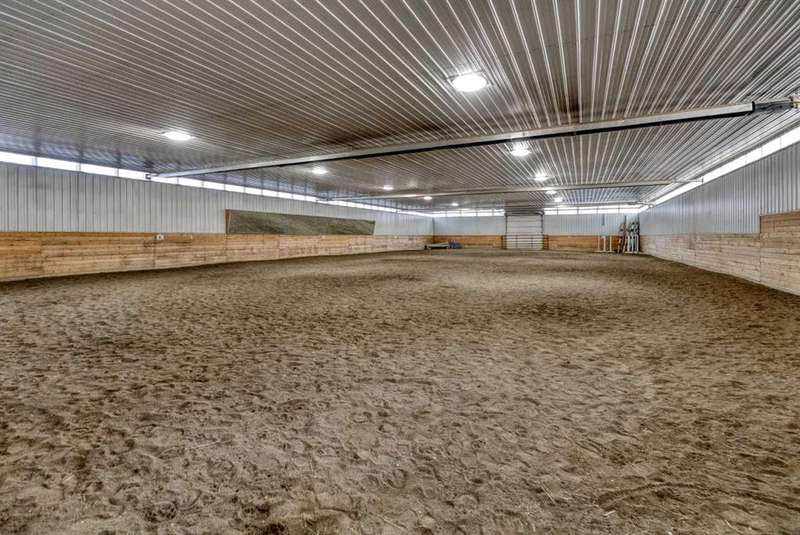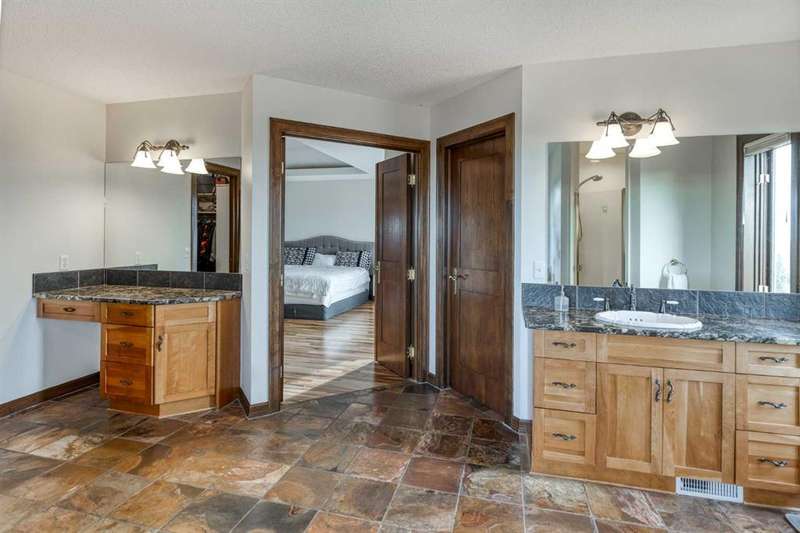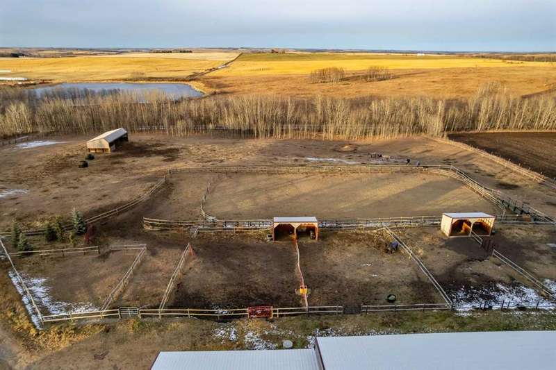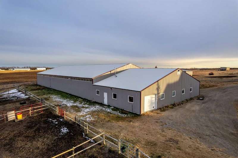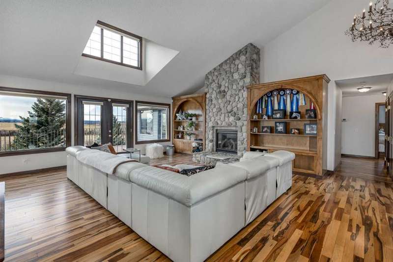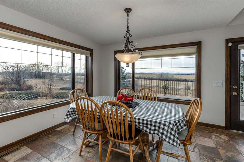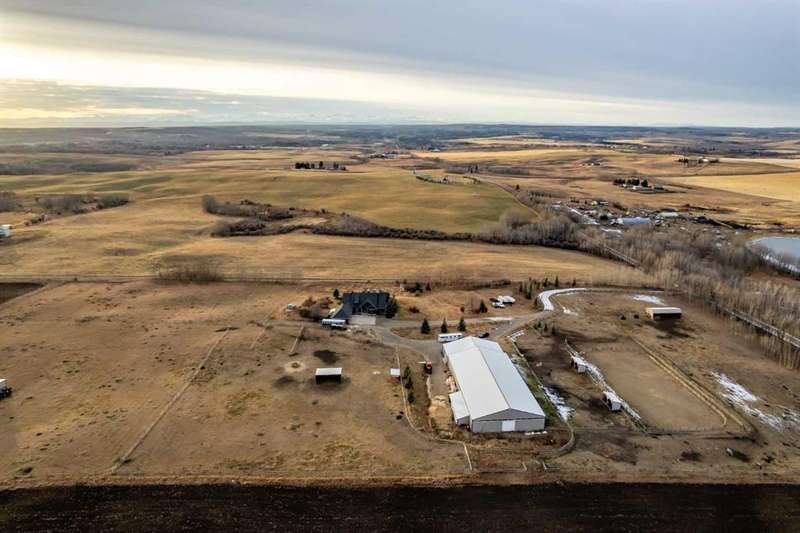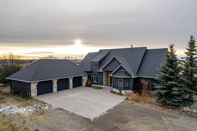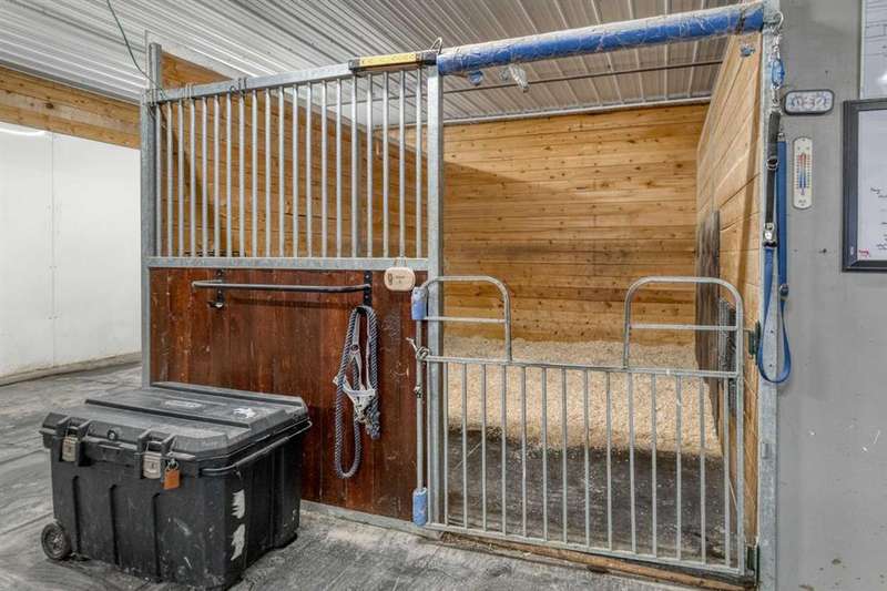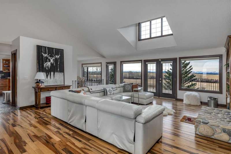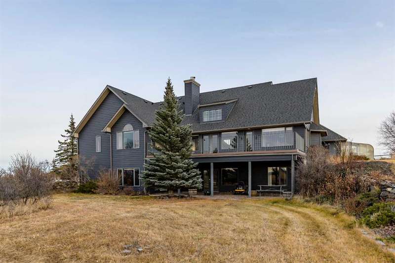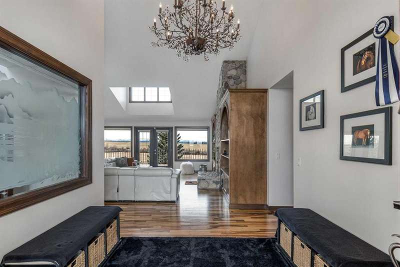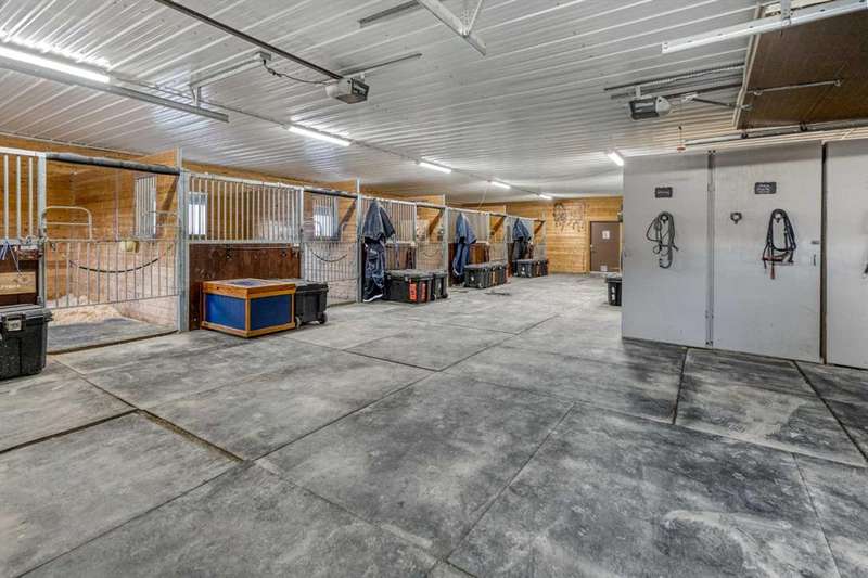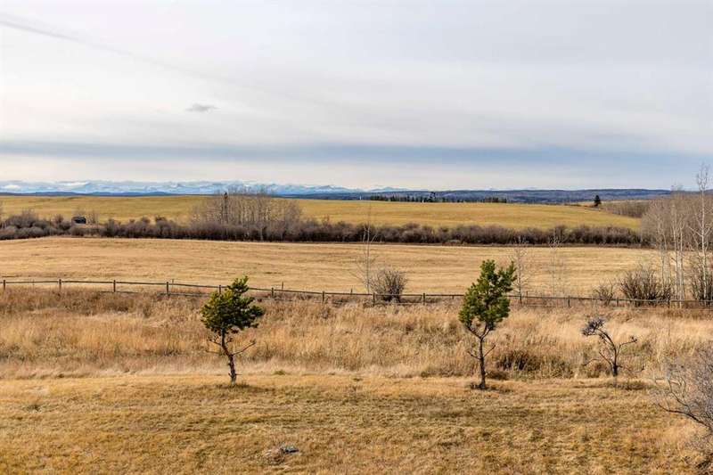 Heated Indoor Riding Arena/Barn, Luxury Walkout Bungalow with Stunning Mountain View | Minutes to Cochrane & Hwy 22 For the equestrian enthusiast, this property is truly exceptional. It is just so amazing and wonderful to be able to walk out to your own private in-door heated riding arena (70’ x 142’) that provides year-round training and riding opportunities. The attached heated barn includes 6 box stalls, a tack room with viewing window and cupboards and a sink to make a coffee or a snack. Along with a washroom and wash bay, and garage for equipment and storage. There are many pens and paddocks, shelters, auto waterers, and a 100 x 200 outdoor riding arena. Exceptional custom-built walkout bungalow offering over 5,055 sq. ft. of quality living space. The home showcases superior craftsmanship with air conditioning, hardwood and slate flooring, vaulted ceilings, and solid cherry woodwork throughout. The gourmet kitchen features granite counters, custom cabinetry, high-end appliances, and a bright breakfast nook with fabulous mountain views. The spacious living room centers around a stunning stone gas fireplace, while the formal dining room is perfect for entertaining. The primary suite includes a sitting area, dual walk-in closets, and a luxurious ensuite. Two additional bedrooms share a Jack-and-Jill bath. The fully finished walkout basement with in-floor heat offers a family room, games area, den/hobby room, 4th bedroom, bath, and ample storage. A heated triple attached garage (40’x22’) provides room for vehicles and workspace. A rare opportunity—luxury living and equestrian excellence just minutes from town! Truly a gorgeous property! Act fast!!!! Checkout the virtual tour.