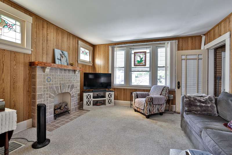 Charming abounds in this 2 story home! Formal living & dining room, kitchen with wood cabinets & walkout. 2 bedroom & remodeled full bath all on first floor. Second floor with 2 additional bedrooms and storage. Enclosed front porch, full basement, great deck for entertaining. 1 car garage. Many new updates