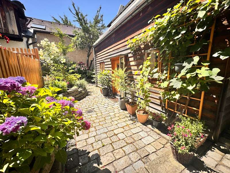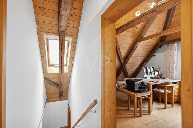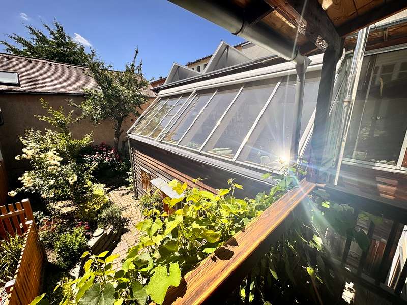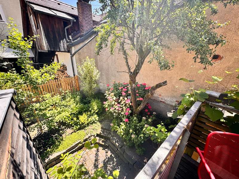 For sale is a historic town house in the heart of Deggendorf, which was first mentioned in 1686 and has witnessed Deggendorf's rich history over the years. This listed property was extensively renovated in 2000 in close cooperation with the monument protection authority and was awarded the Bavarian Monument Protection Medal for its exemplary restoration. This unique property offers a living space of approx. 130 m² and a currently rented office space of approx. 45 m². The building is located on a plot of approx. 170 m² in the absolute center of Deggendorf, only approx. 1 minute's walk from the town square. Including the office space, the building comprises a total of eight rooms spread over the first floor, second floor and attic. The refurbishment measures from 1999 to completion at the end of 2000 were carefully planned and executed in order to preserve the historic charm of the building as well as to integrate modern living comfort. To name just a few of the measures, the floor in the old building was lowered by approx. 20 cm and new reinforced concrete slabs were installed to improve the room height. The ground floor ceiling beams were decoupled for both structural and sound insulation reasons, while the ceilings were extensively insulated. The ceiling of the second floor was additionally reinforced with steel brackets for structural reasons. The exterior walls on the first floor of the old building consist of mixed masonry with a decreasing proportion of quarry stone towards the top, while additional brickwork was used as an inner shell on the top floor and towards the neighboring buildings. The roof features exposed boarding on the existing rafters, supplemented by new rafters with Isofloc insulation (cellulose) and titanium zinc sheet roofing installed on top during the renovation. The new extension built during the renovation to the south of the property offers an exciting combination of historic old building and successful new construction with modern elements. Built on a solid reinforced concrete slab with frost aprons, the extension has a reinforced concrete intermediate ceiling and a glass roof ceiling with exposed rafters on the second floor. The walls here are made of brickwork, supplemented by a reinforced concrete wall to the west. As in the old building, the interiors are fitted with high-quality real wood floorboards. During the renovation, great importance was attached to preserving historical features. For example, the tiles, the floor tiles and the real wood floorboards were carefully removed wherever possible, professionally refurbished and reinstalled. The wooden box windows have also been preserved and give the property an invaluable flair when looking outside, while the new building has double-glazed wooden windows. The property is heated by gas central heating, which is supported by solar energy for water and heating. The heat is efficiently distributed throughout the building via wall heating. The living area on the second floor comprises the main bathroom with bathtub, while the top floor offers an additional bathroom with shower. The office area in the renovated old building, approximately 45 m² in size, is equipped with a kitchen and a WC. If the new owners do not wish to use the office themselves, the current tenancy agreement for the office can be continued. This building typology combines historical character with modern elements in an impressive way. This unique building not only offers an exceptional living experience, but also preserves a piece of history in the heart of Deggendorf. Let yourself be convinced by the individual and high-quality features and arrange a viewing appointment to experience this exclusive townhouse in person.