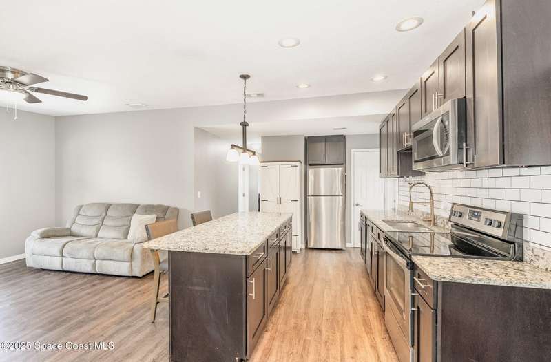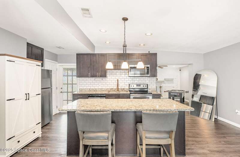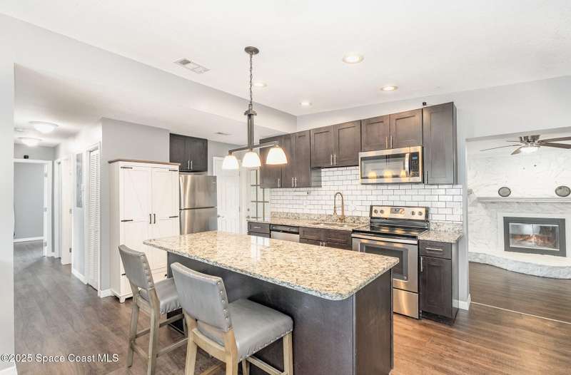 NEW NEW LISTING! Nicely renovated and perfectly located in the heart of Titusville, this 4-Bedroom | 2-Bath home offers the best of Florida's Space Coast living! The split floor plan provides a private primary suite, while the home's updates include newer flooring, granite countertops, upgraded cabinets and stainless steel appliances. Enjoy cozy evenings by the stone fireplace in the spacious family room. Step outside to a screened patio, perfect for entertaining guests! Have everyone enjoy the great fenced backyardideal for family gatherings or simply relaxing as you watch rocket launches from your own yard! With a 2018 ROOF, WATER HEATER & HVAC, this abode has been updated and is move-in ready. Conveniently close to NASA, Blue Origin, Orlando and Port Canaveral!