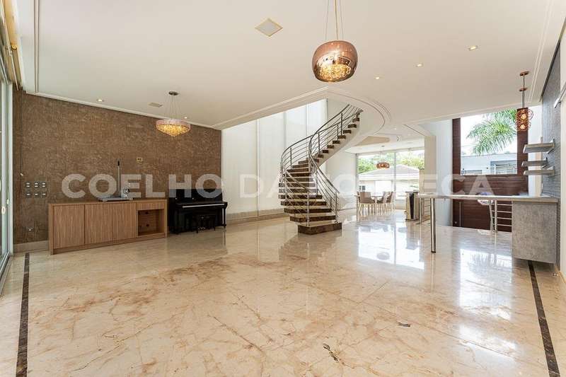 Casa no condomínio ALPHA CONDE, com 525m² área construída, 4 dormitório(s), 4 suíte(s), 3 vaga(s), 5 banheiro(s), piscina, escritório, depósito, ar condicionado, varanda, aquecedor solar, pé direito duplo.