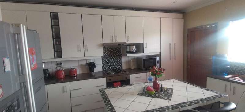 "EXCLUSIVE SOLE MANDATE" Discover your dream home in the serene neighborhood of Kwanonqaba Mossel Bay nestled in a quiet area with convenient access to the shopping mall and public transport routes. This beautifully maintained property features four spacious bedrooms,perfect for families or guests and two modern bathrooms including shower and geyser for your comfort An open -plan layout that seamlessly connects the kitchen ,lounge and dinning area creating an inviting atmosphere for entertaining and family gatherings The Kitchen boasts stylish built in cupboards ,offering plenty of storage and functionality for all your culinary.Spacious double garage ,providing secure parking and additional storage space. This home is ideal for those seeking comfort and convenience in a peaceful setting .Dont miss the opportunity to own this fantastic property!! Contact us today to schedule a viewing and make this beautiful house your new home !!