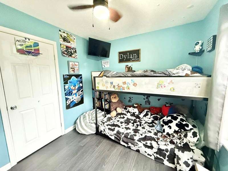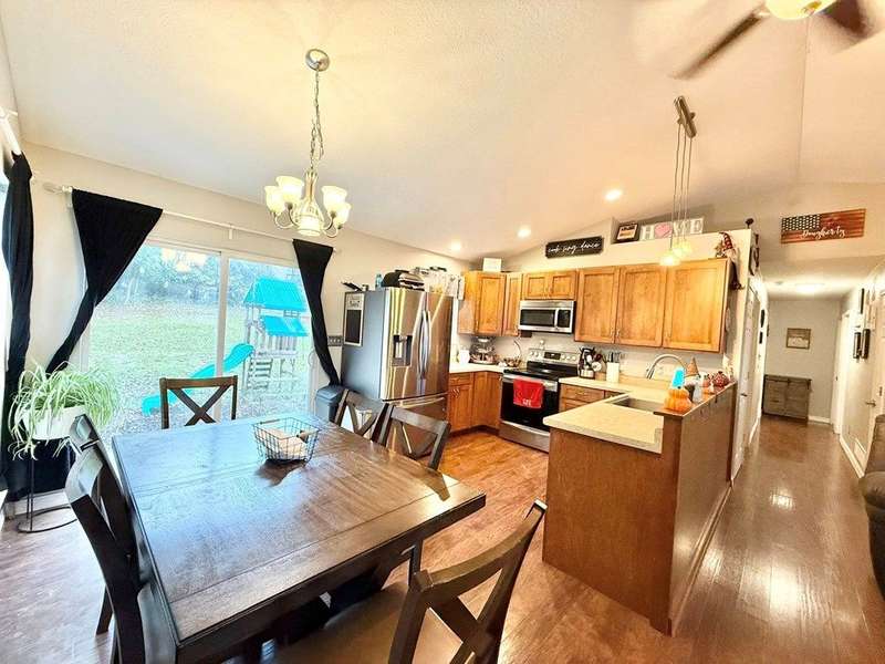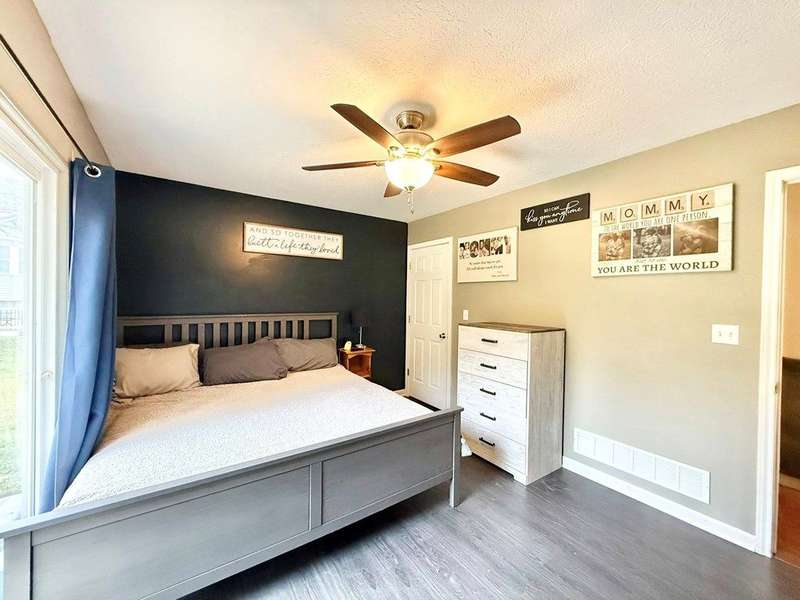 Come explore this 4 bedroom 2 bedroom home with views of Apple Valley Lake. Enter through the front door into an open concept living room, dining and kitchen. Continue down the hallway to find the primary suite with private access to the back deck. Also the main floor has two bedrooms and a shared full bath. Closets throughout. Proceeding to the basement, you will find a finished bedroom, and a framed in living room, framed in 5th bedroom and laundry area that is plumbed for a third bathroom. Cement poured walls and lots of natural light makes this desirable to be finished into more living space. Don't miss this house!