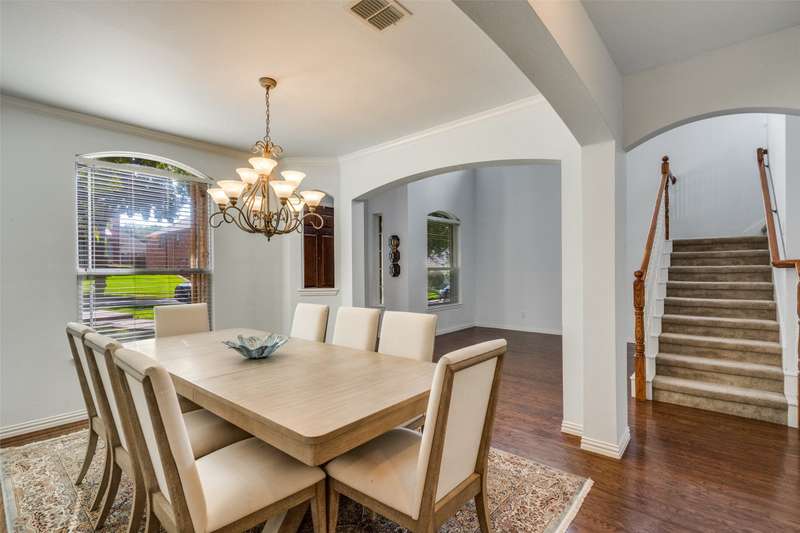 Welcome to the sought after Hillside of Winding Creek in McKinney! This stunning 4-bed, 2.5-bath home offers an inviting layout with an office, formal dining, breakfast room, and three living areas. A charming brick and stone exterior with mature trees sets the tone, while warm wood floors greet you inside. The kitchen shines with a gas cooktop, under-cabinet lighting, and flows seamlessly to the spacious living area featuring a stacked stone fireplace with gas starter. Tall windows fill the home with natural light. The primary suite includes dual split vanities, a soaking tub, separate shower, and walk-in closet. All bedrooms feature ceiling fans for year-round comfort. Enjoy an oversized laundry room, backyard shed for storage or hobbies, and a 3-car garage!