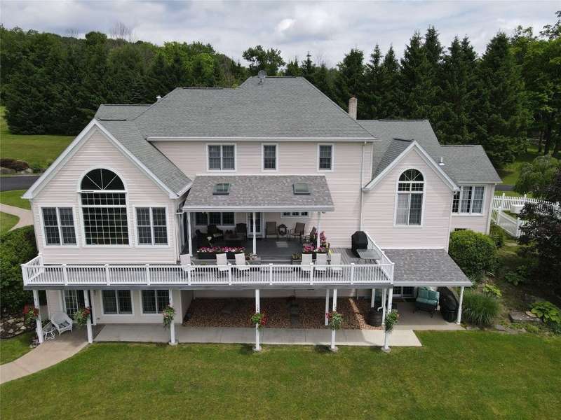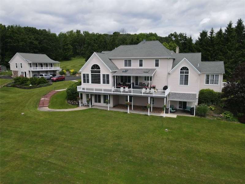 MILLION DOLLAR VIEWS are yours with this unique property! Set on 14.64 acres overlooking picturesque Endwell Greens Golf Course. Currently a bed and breakfast, this home and carriage house features 11 bedrooms, 10 full & 2 half baths. This includes 4 apartments & private owners' quarters. Covered deck just above the 15th hole where you can take it all in. Many recent improvements are listed in attachments. Beautiful common areas include a banquet hall with wet bar, living room with vaulted ceiling, huge windows & comfy window bench, sitting room to cozy up to one of 3 fireplaces on those cold nights. 2 apartments are in the carriage house above the 3 car garage and adjacent to the stocked pond with deck. 2 apartment are in the lower-level of the main house with private patio access. Plenty of parking in the newly paved driveway. With its residential zoning this can be that primary residence large enough for everybody or continue to operate it as the successful B&B. Truly one of a kind!