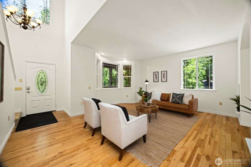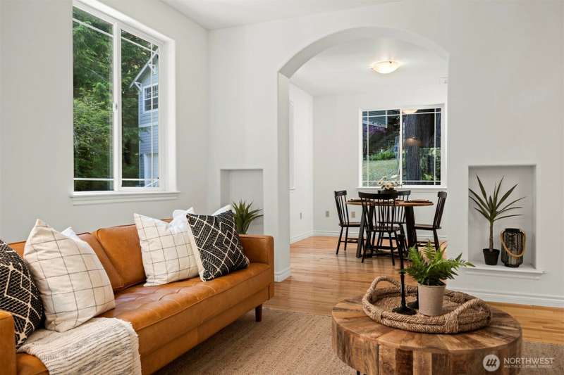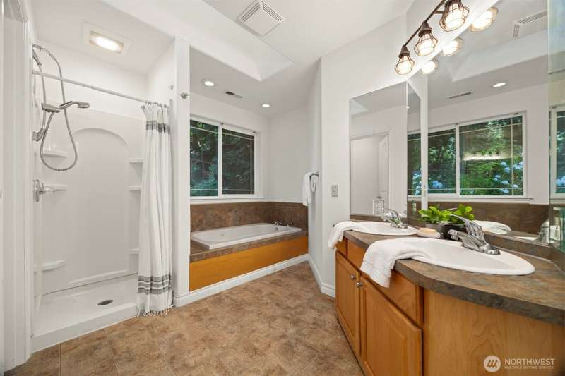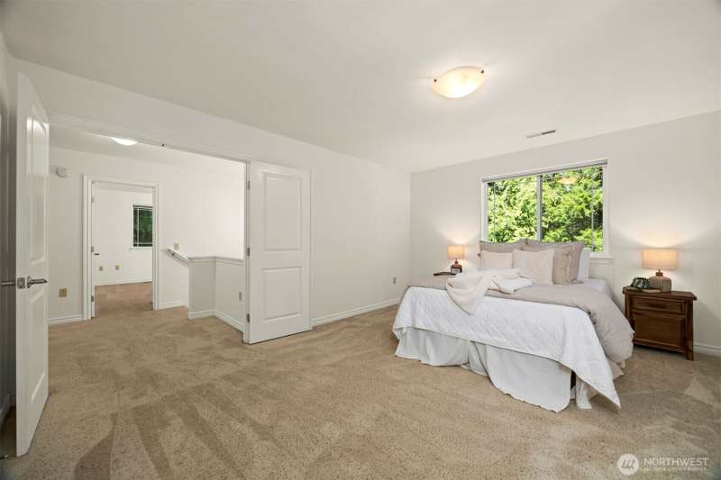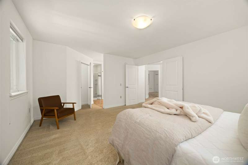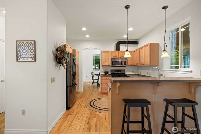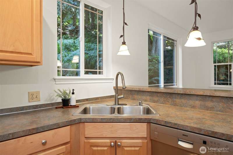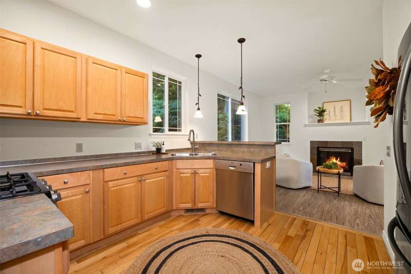 Tucked next to a greenbelt on a quiet dead-end street, this Sudden Valley home offers peace, privacy & convenience. No steep hills, no through traffic, & close to WTA & school bus stops. Step inside to hardwood floors & a bright, welcoming living room. Dining room flows off the kitchen, which opens to a cozy family room for added living space. Upstairs primary includes a walk-in & full en suite bath. 2 additional bedrooms & a 2nd full bath complete the upper level, while a half bath on the main floor adds everyday ease. With natural gas (no propane bills), a brand new roof, fresh interior paint, this home is move-in ready. 2-car garage, driveway & off-street parking offer plenty of room for guests. Golf, marina, beaches, trails & more!