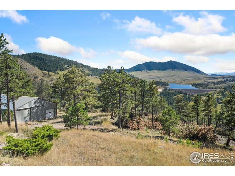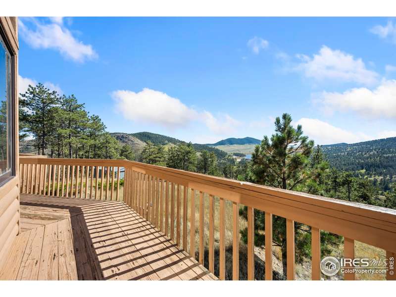 Ready to own your slice of beautiful Colorado? Welcome to 965 Stone Mountain Ranch Rd, a private mountaintop retreat perched on over 48 acres with sweeping views of Pinewood Reservoir and the Front Range. This beautifully crafted cabin blends rustic charm with modern comfort, featuring a durable metal roof, floor-to-ceiling windows, a wraparound deck, and endless serenity. Enjoy main floor living with two bedrooms, a spacious kitchen, and a bright, airy living area. The spacious loft can easily convert to a third bedroom with an ensuite. Just steps away from the home, a massive 1,900+ sq ft outbuilding provides space for cars, campers, and all your mountain toys. Step outside to newly fire-mitigated grounds, a water feature, and multiple sitting areas where wildlife and breathtaking sunsets are your neighbors. Just minutes from hiking, boating, and camping, yet still a convenient drive to town, this home offers the perfect balance of adventure and everyday life. It is truly Colorado living at its finest. Schedule your showing today! Please note, the property is on a private road, please do not drive by without an appointment.