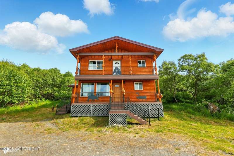This bluff-front beauty on South Cohoe offers the ultimate Alaskan retreat. Set on 2.13 acres, the home features 2 bedrooms, 2 bathrooms, and a bonus room—perfect for relaxing or hosting during a dreamy Alaskan summer. Located just 25 minutes from Soldotna and Kenai, and under 10 minutes from prime fishing and dipnetting on Kasilof Beach, you'll be ideally situated for endless endless recreation. Spend your days boating, beachcombing, or fishing, then come home to grill dinner and unwind with loved onesall while soaking in panoramic views of Cook Inlet and the majestic Alaska Mountain Ranges. Built in 2006 by two brothers inspired by the Alaskan lifestyle, this home has been lovingly cared for and is exceptionally well maintained. Schedule your private showing today!