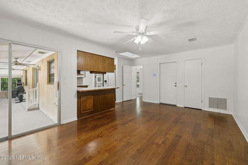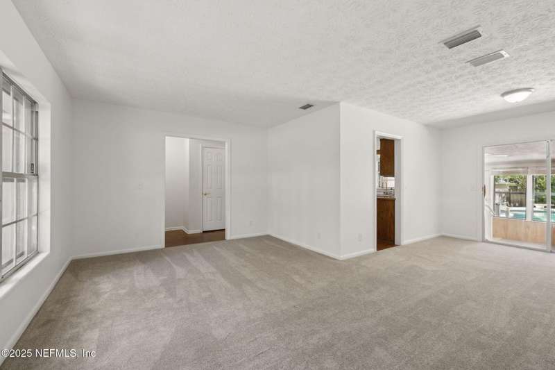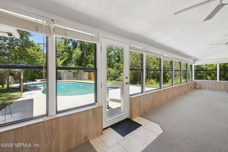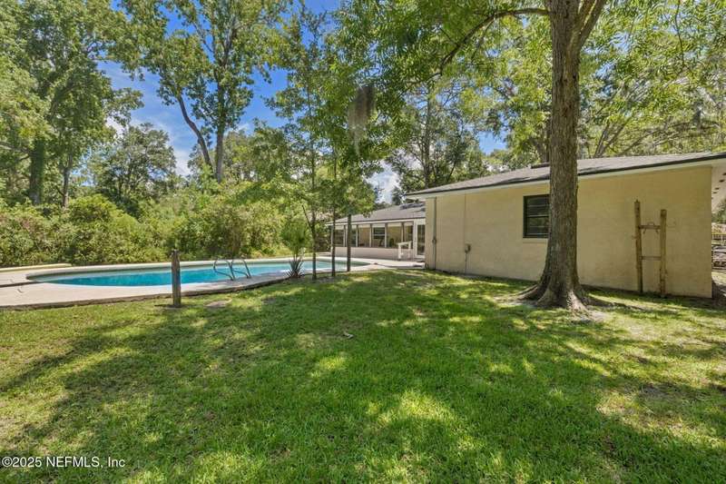 Updated Mandarin home with in ground pool! Spacious Living Room and Dining Room off of entrance Foyer. Family Room opens to kitchen with breakfast bar. Owners Suite has its own bathroom with newer glass shower doors. Bedroom #2 has walk in closet. Bedroom #3 has closet with built in drawers & storage. Sellers opened closet into laundry room. Can be converted back to separate closet. Access door to laundry room located in garage. New carpet in lr/dr and bedrooms. Freshly painted interior. Florida room with lots of windows to enjoy the pool and backyard, and is not included in square footage. Roof replaced in 2020. HVAC is serviced annually by Thigpen Heating and Air. Exterior of home is coquina style construction (per original owner info).