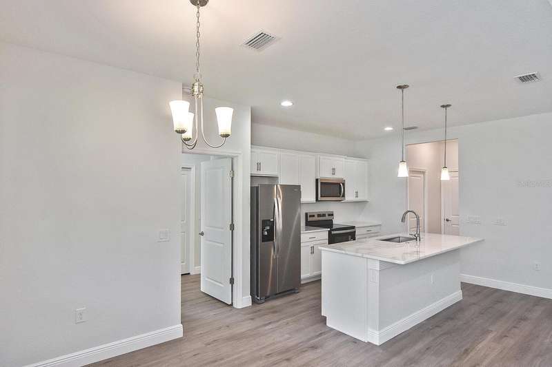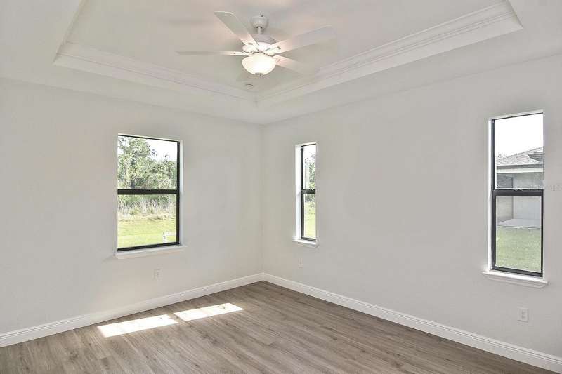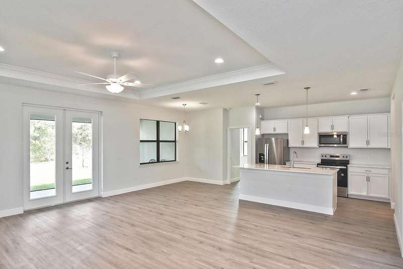 PRICED TO SELL! Step into this beautifully crafted 3-bedroom, 2-bath home with a versatile bonus den, situated outside a flood zone for peace of mind. The open-concept design features soaring 9'4" ceilings, with stunning tray ceilings extending to 10'4" in both the great room and master suite, offering an airy, expansive feel. The kitchen is perfect for hosting, featuring sleek marble countertops, stainless steel appliances, and soft-close cabinetry, plus a generously sized pantry. The spacious master suite provides a retreat with dual vanities, a luxurious fully tiled shower, and an impressive walk-in closet. Enjoy quiet mornings or evenings on the large, screened lanai, with views of a tranquil canal and private wooded preserve. With a 2-car garage and a 10-year structural warranty, this home is built for comfort and peace of mind. Located just minutes from local shopping, dining, schools, golf courses, and beaches, this home is an ideal spot to enjoy both serenity and convenience.