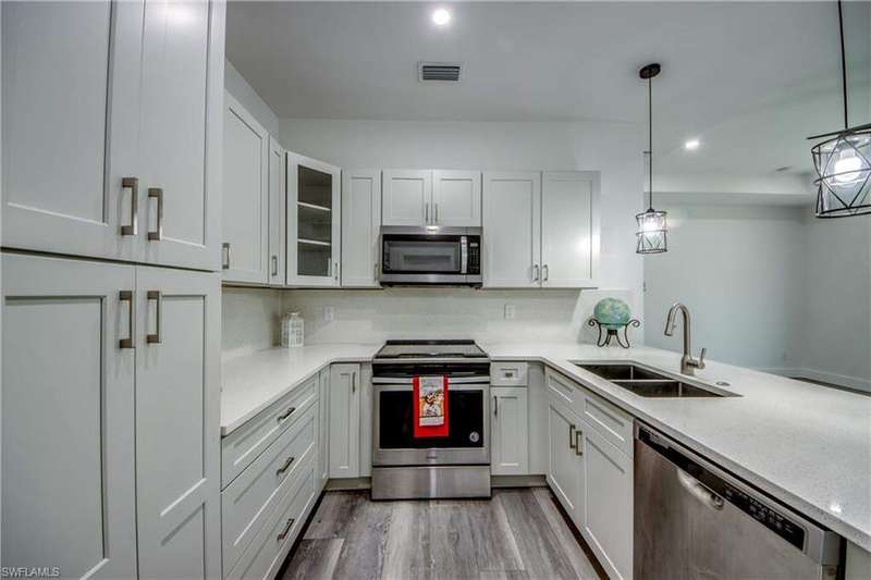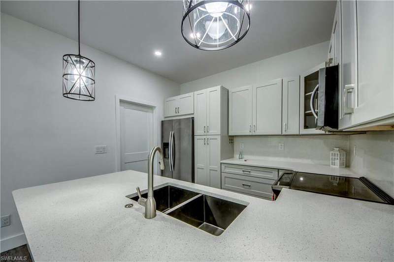 Seller offering $5,000 in incentives! Built in 2021, this meticulously maintained home offers modern style and comfort. You'll love the tray ceilings, recessed lighting and resilient vinyl plank flooring, along with finishes like quartz countertops, Moen fixtures and soft-close wood cabinetry. The sleek kitchen features stainless steel appliances, backsplash, ample cabinet space and a bar counter with stool seating and pendant lighting. The open-concept layout connects the living, dining, and kitchen area. Enjoy generous storage with walk-in closets in the primary and one of the guest bedrooms. Both bathrooms feature custom-designed tile work that adds a touch of luxury and style featuring a frameless glass shower in the primary bathroom and tub/shower combo in the guest bathroom. Additional features include hurricane impact windows and exterior doors, a dedicated laundry room and exterior soffit lighting with seamless gutters around the entire home. The fully fenced backyard is a private oasis with mature trees offering plenty of space to relax or entertain. Enjoy the convenience of the backyard shed perfect for storing tools, lawn equipment or outdoor toys. Conveniently located near shopping, dining and RSW Airport. Don't miss your chance to tour this nearly new home-schedule your showing today.