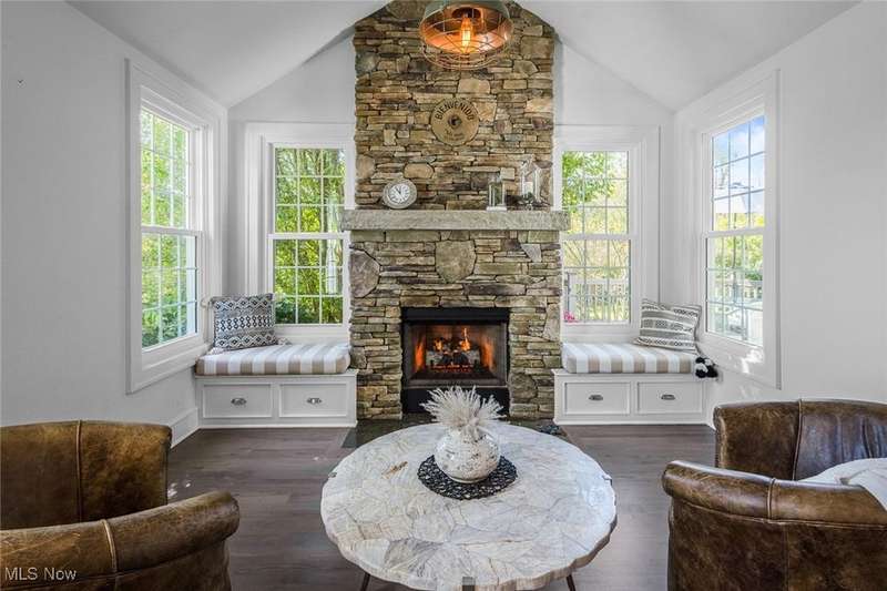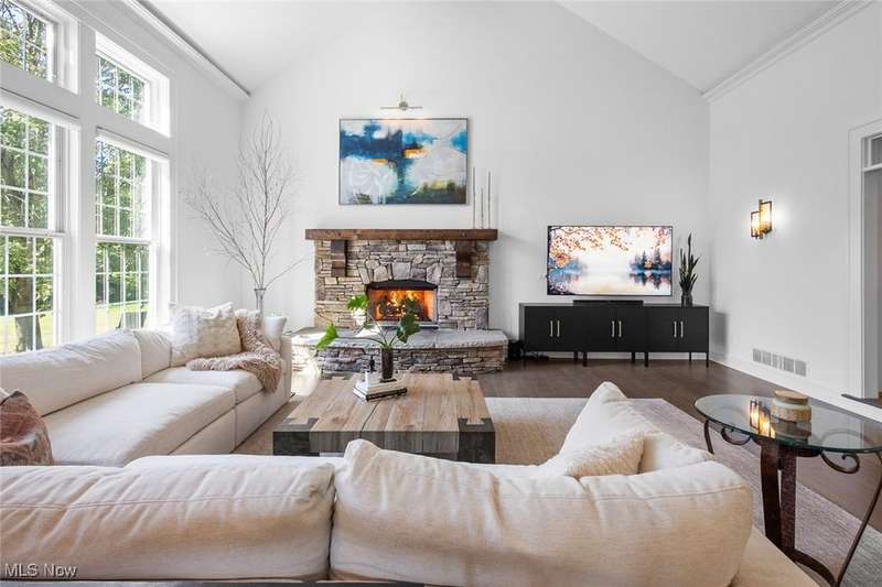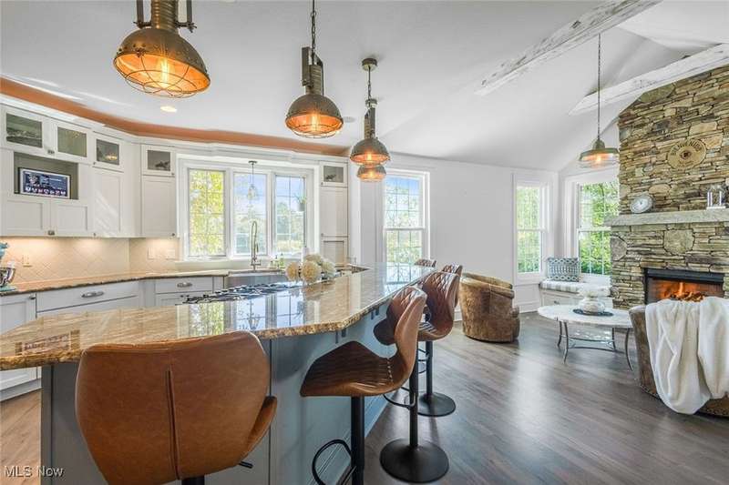 Welcome to your dream estate in the coveted Kenston School District. Tucked away on 10 private acres with a winding circular drive, this 6,000+ sq ft residence blends timeless craftsmanship, thoughtful updates & spaces created for both quiet retreats & unforgettable gatherings.Luxury begins the moment you arrive: a wraparound porch, koi pond w/waterfall & serene outdoor living set the tone. Enjoy morning coffee on the porch listening to the waterfall, or unwind w/sunset views from the back patio. Inside, hardwood floors lead to a state-of-the-art kitchen w/premium appliances & open flow to the vaulted dining or hearth room w/striking stone fireplace. The great room stuns w/soaring beamed ceilings, dramatic windows & another stone fireplace. A spacious office, 1st-fl laundry & functional mudroom add everyday ease.The 1st-fl primary suite is a true retreat w/a fully renovated spa bath (2025), walk-in closet & private screened porch?perfect for a nightcap under the stars after watching a game in the lower-level speakeasy bar. Upstairs, 3 large bedrooms include an en-suite & Jack-and-Jill, plus a versatile bonus room.The finished walkout LL is designed for entertaining?featuring a speakeasy lounge w/full bar, gym, rec space & seamless access to the patio & firepit. Imagine cocktails around the fire, game days in the lounge, or hosting grand celebrations. This property was designed for gatherings?even weddings have been celebrated here.3 impressive outbuildings expand the lifestyle: a heated Morton building w/indoor volleyball/recreation court & bays for ATVs/cars, a woodworking shop w/pro ventilation, & a garden shed for hobbies.Recent updates provide peace of mind: new Provia windows, A/C, radon system, septic & well inspections, updated electrical, full primary bath renovation & $35k driveway redesign. Generator, tankless water heater, Superior Wall foundation & completed pre-inspection assure quality.This is not just a home?it's an experience.