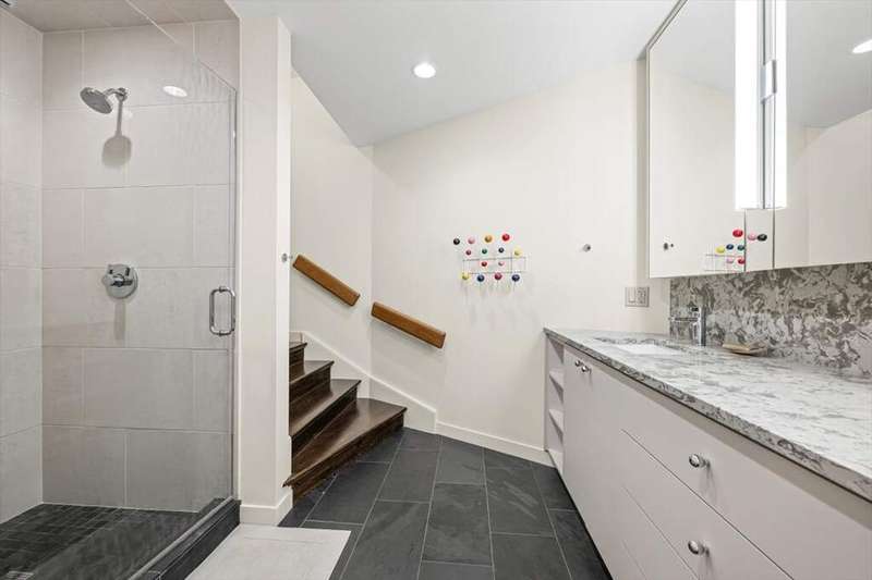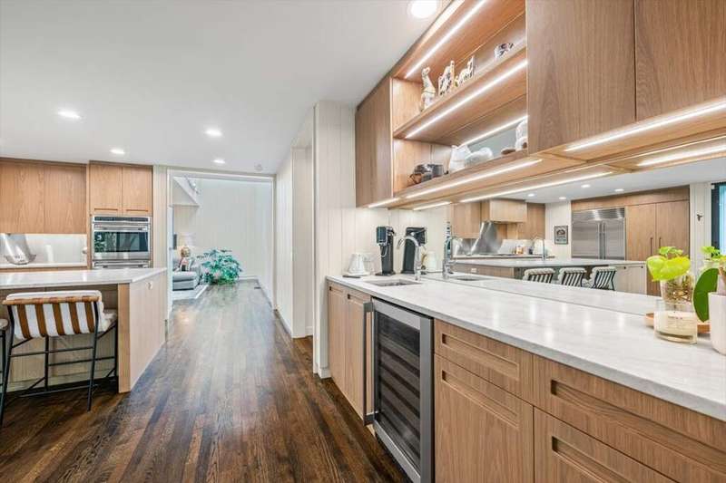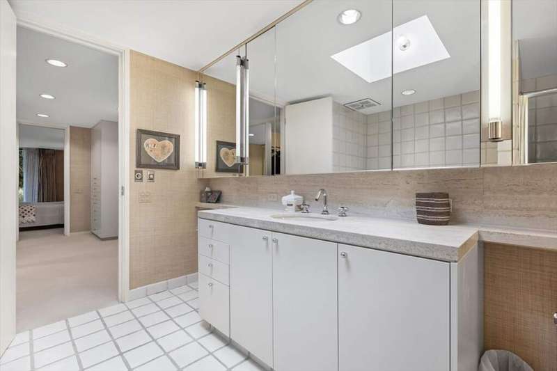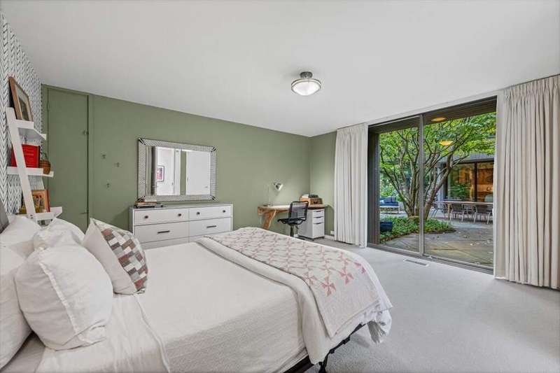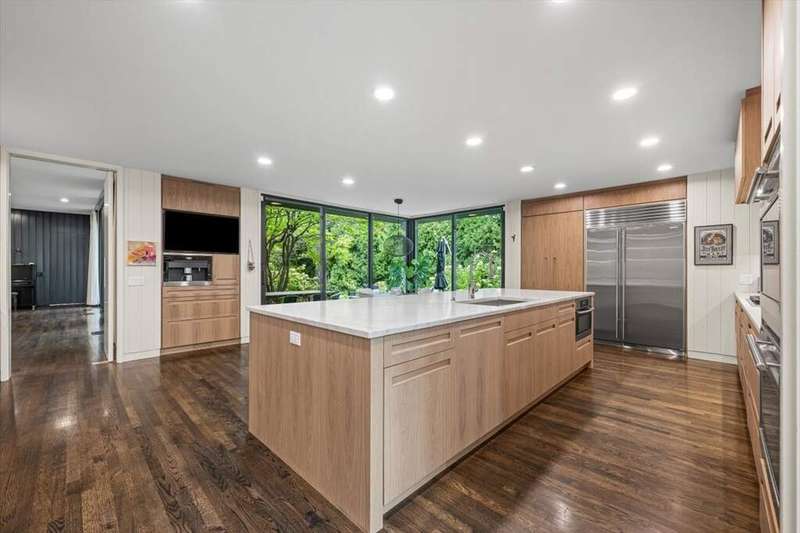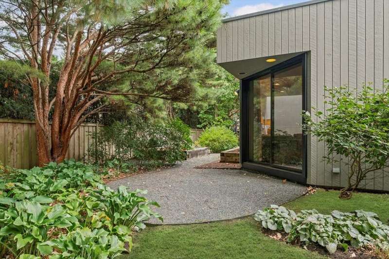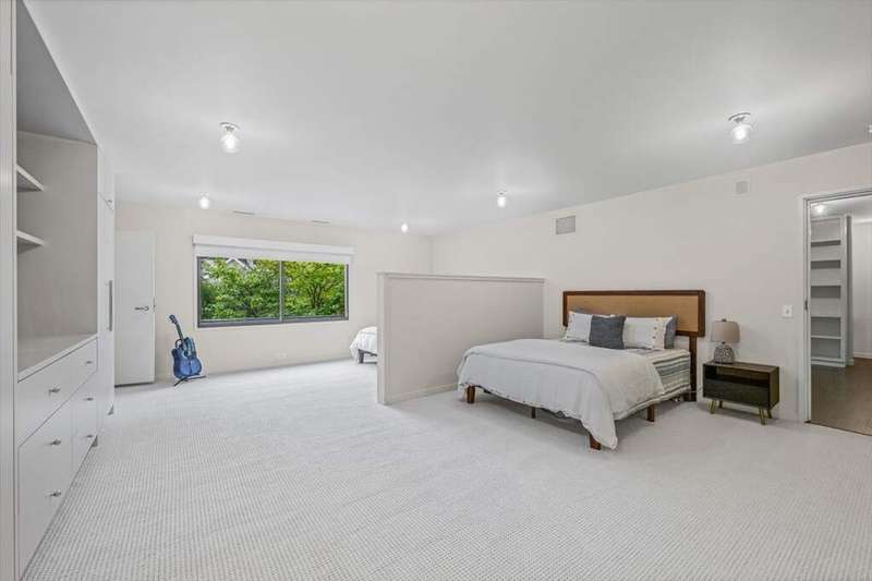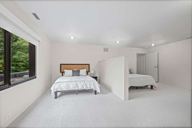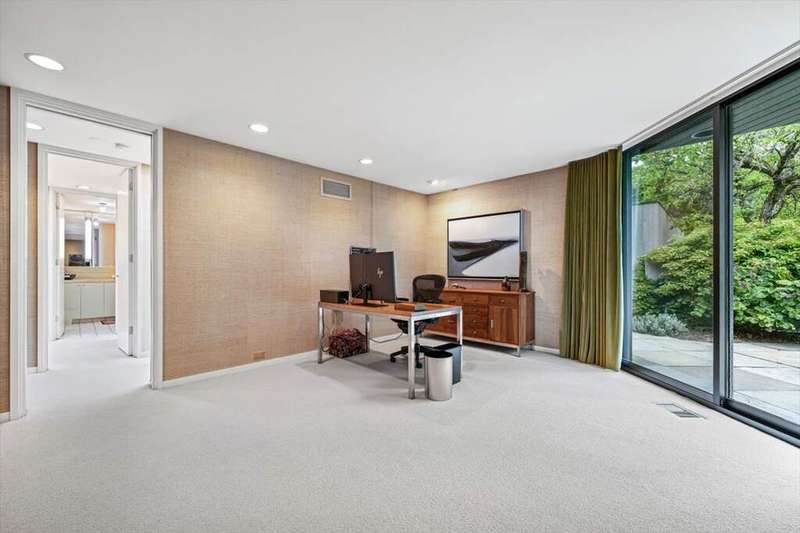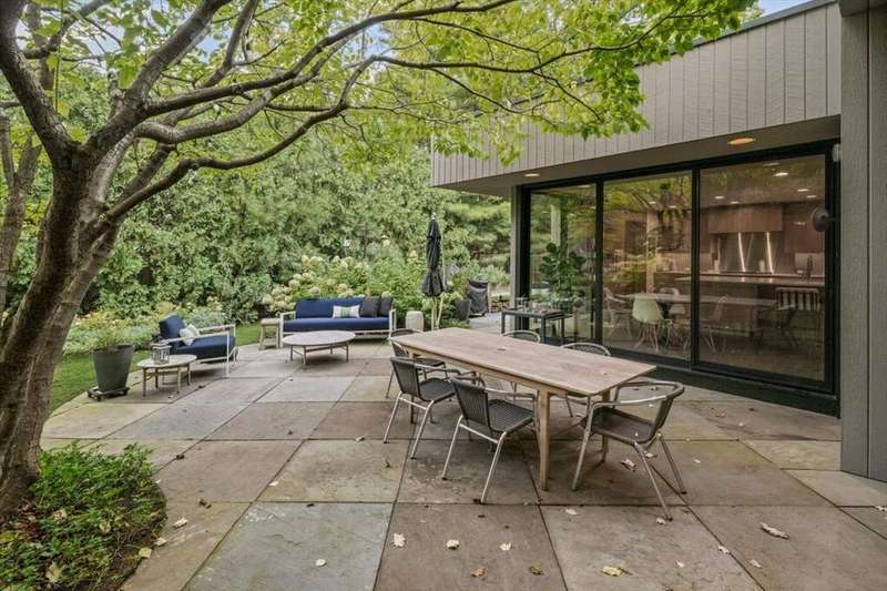 Beautifully designed ranch by renowned architect Tony Grunsfeld, perfectly situated on a private street and a spacious half-acre lot. This remarkable 4+bedroom, 4.1-bath home combines timeless architecture with thoughtful modern updates, offering comfortable, elegant living in one of the North Shore's most sought-after locations. The newly updated kitchen is the heart of the home, featuring all the latest amenities, a huge island, and abundant cabinetry. Doors open to a lovely patio, ideal for outdoor dining, barbecues, and quiet relaxation. The large living, dining, and family rooms flow seamlessly together, creating a perfect setting for both casual gatherings and formal entertaining. A newly finished second floor has been transformed into a private retreat with an oversized bedroom, full bath, and sitting or exercise area-perfect for guests, a teen suite, or quiet relaxation. The large mudroom/laundry room adds convenience and organization, with space for everyday essentials. The expansive primary suite is a true sanctuary, featuring two full bathrooms and large walk-in closets-a rare and luxurious design detail that enhances both comfort and privacy. Included in the suite is a large office with a private patio, can also be a bedroom. Natural light pours through expansive windows, highlighting the serene, landscaped surroundings and emphasizing the signature Grunsfeld connection between architecture and nature. This is a rare opportunity to own a Tony Grunsfeld , blending sophistication, privacy, and the ease of single-level living-all in a beautiful, peaceful setting.