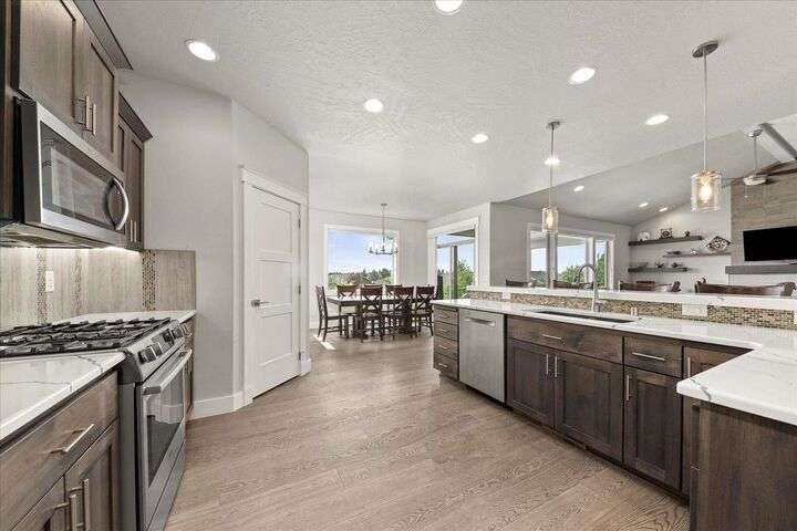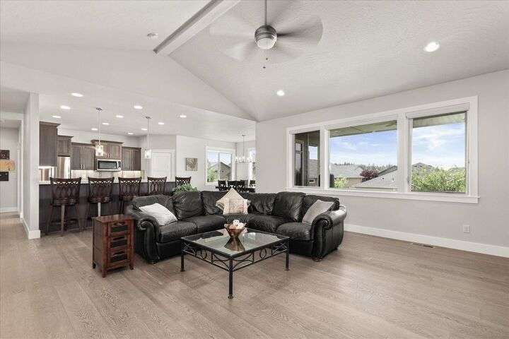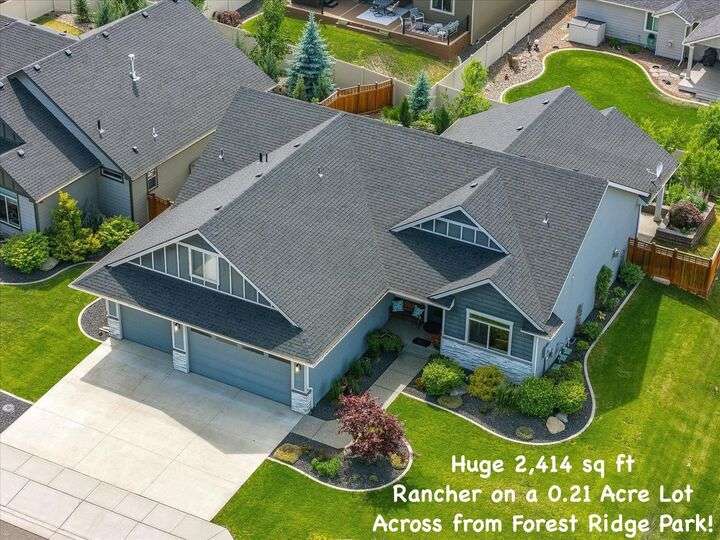 Exquisite like-new 2,400 sq ft single level home located across the street from Forest Ridge Park in Eagle Ridge, with direct access to 150 acres of open space & walking trails! Built in 2018 by a high-end builder with exceptional attention to detail. Soaring cathedral ceilings & beautiful finishes throughout. Cozy gas fireplace in the spacious great room with large pictures windows & tons of natural light. Stunning kitchen with stainless steel appliances, gas range & walk-in pantry. Watch the sunset every evening from the dining room table or the large covered back patio. A sliding door connects the two for a perfect setup for indoor-outdoor entertaining! Huge primary bedroom with walk-in closet & master bath with large tiled walk-in shower. Large 320 sq ft bonus room above an oversized 3-car garage. Beautifully landscaped front & back yards with raised garden beds. Eagle Ridge has amazing parks & recreation opportunities. Just 10 min from downtown Spokane, 5 min to shopping & dining, and 15 min to Airport.