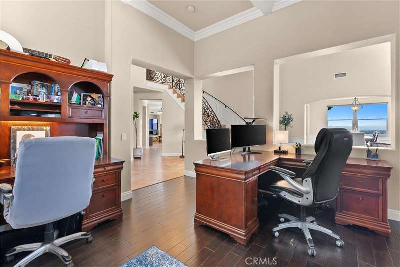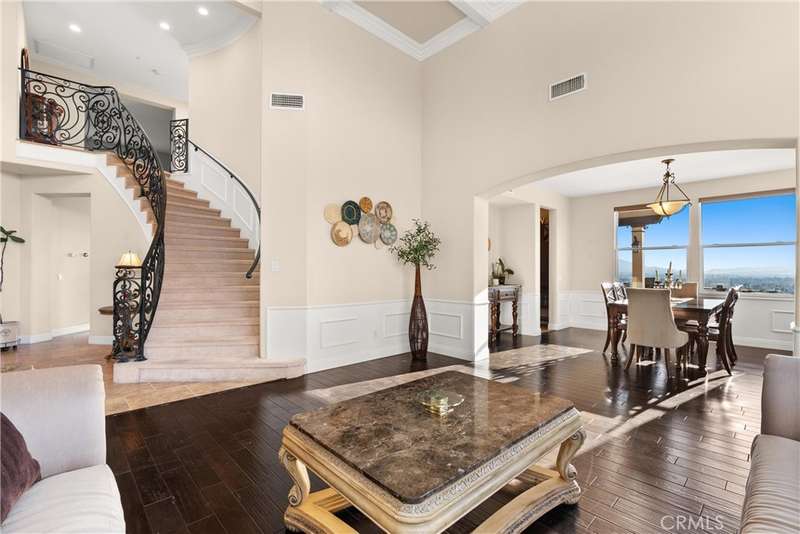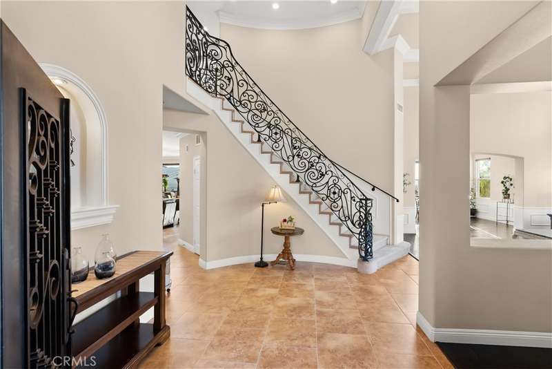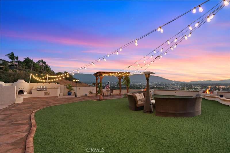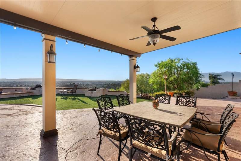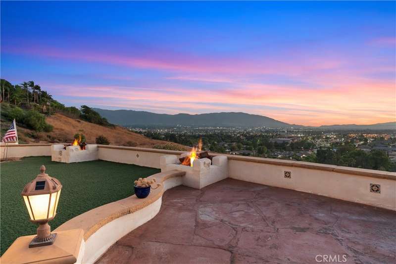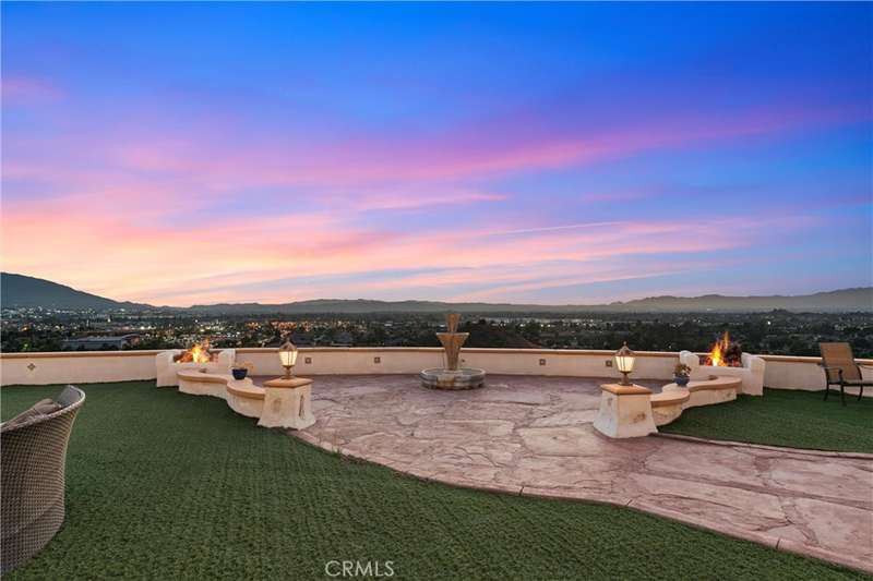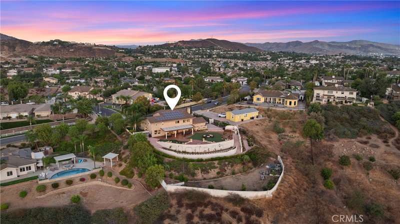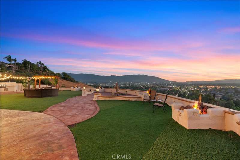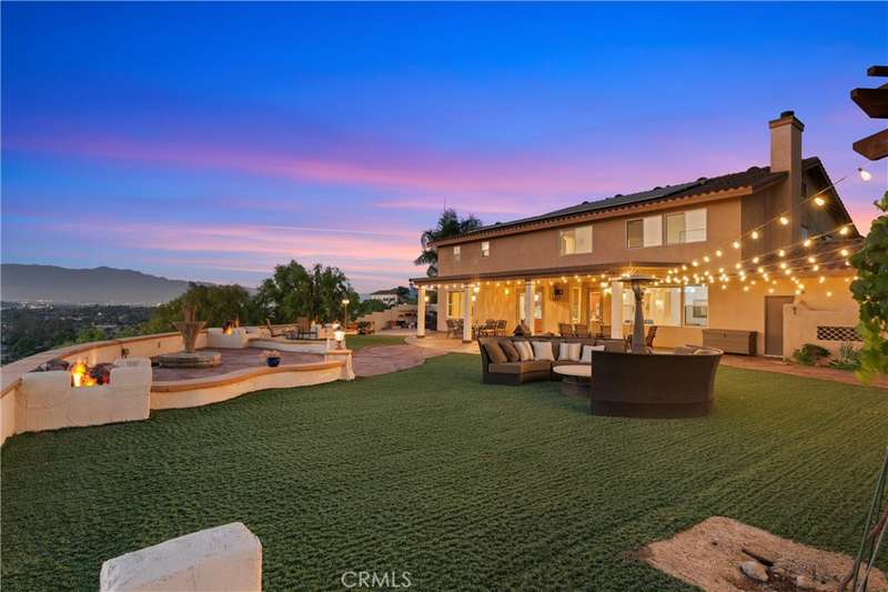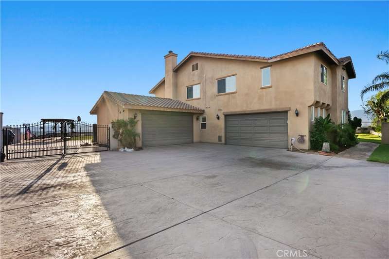 SELLER OPEN TO PROVIDING A CREDIT TOWARDS INTEREST RATE BUY DOWN. Inquire for more details. Nestled within the tranquil confines of Norco Hills, this exquisite estate exudes sophistication, class and a touch of Tuscany-country charm. Spanning 3,895 square feet of living space on a sprawling .87-acre lot, this gated residence offers unparalleled privacy and unobstructed, panoramic city-light and mountain views. As you approach the property, you'll be captivated by the meticulously designed exterior, surrounded by stucco-finished block walls, iron fences, and a remote-control gate that leads to a paved front entrance. The impressive entryway through the gated courtyard is adorned with lush vines wrapped around the archway, guiding you to the custom wrought iron double doors. Step inside to soaring two-story ceilings and be greeted by the luxurious board and batten walls, complemented by rich hardwood flooring and pristine tile. The ornate wrought iron staircase is a masterpiece. The gourmet kitchen is a chef's dream, featuring a large island with bar seating, granite countertops, a built-in gas range and hood, and stainless-steel appliances. This space seamlessly flows into the family room, where French doors open to the breathtaking tri-level backyard. Completing the main level is an office that can be converted into a 5th bedroom plus a bathroom with a standing shower, as well as, a powder bathroom perfect for accommodating guests. Upstairs, the massive primary suite is a sanctuary, offering more of those incredible views. The spa-like primary bathroom boasts his and her walk-in closets, dual sink vanities with granite countertops, marble flooring, a tumbled travertine soaking tub, and a spacious walk-in shower with a rainfall showerhead. An additional three generously sized secondary bedrooms can be found upstairs featuring mirrored closets. There is also an upstairs hallway bathroom with dual sinks, granite countertops and a shower tub. The outdoor space is nothing short of spectacular, with a built-in BBQ counter, 2 fireplaces, 5 gas fire pits, 2 water fountains, 3 chicken coops, various fruit trees, and designated planters to grow your own food. Enjoy al-fresco dining while viewing incredible sunset views under the Alumawood-covered patio with 3 ceiling fans. Additional features include a spacious laundry room with extra storage, double 2-car garages accommodating up to four vehicles, and a long gated driveway for RV parking. Paid off solar and no HOA!