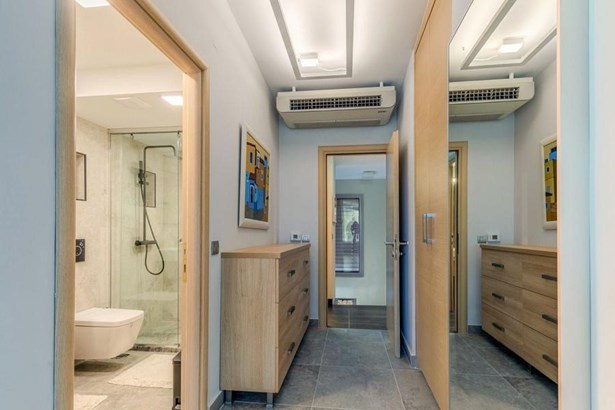 The villa is in excellent condition, located in a private complex with stunning views of the Sani hotel, the forest, and the sea. The property spans 260 m², with a 680 m² garden, 4 bedrooms, 4 bathrooms, and a private pool.