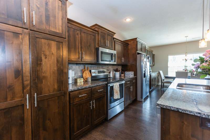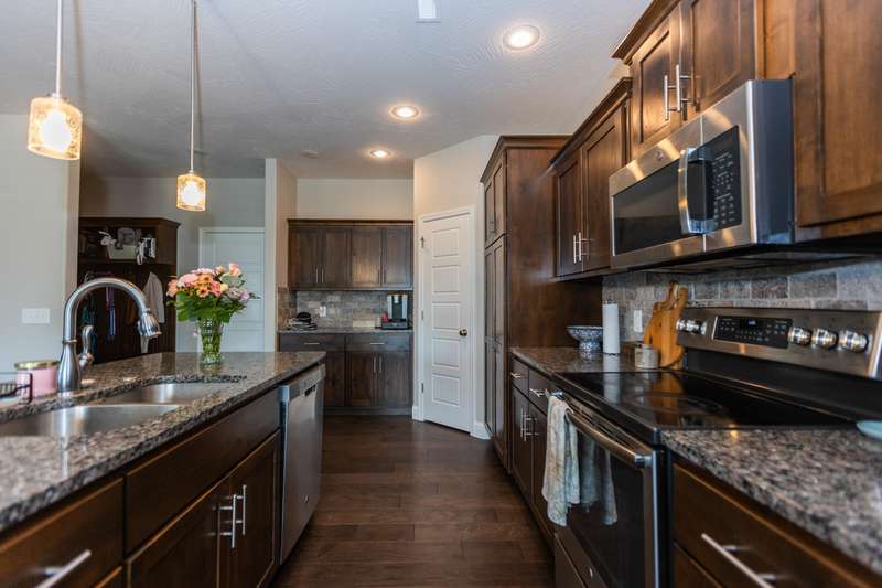 Welcome to this beautiful home, built in 2020 with a kitchen that is unlike any other in the neighborhood. Two pantries, built ins, stunning natural light and tasteful finishes. Every bedroom has it's own walk-in closet and the home offers a unique floorplan, rare for Eagle Ridge Estates. The upper level offers a primary suite with an impressive walk-in closet, walk-in shower, upgraded cabinetry and more. Two other spacious bedrooms and the laundry room can be found on the upper level as well. The lower level is a walkout basement, offering a second living area. You'll love the wet bar space, large bedroom, bathroom and impeccable storage! This home is truly one that you do not want to miss!
