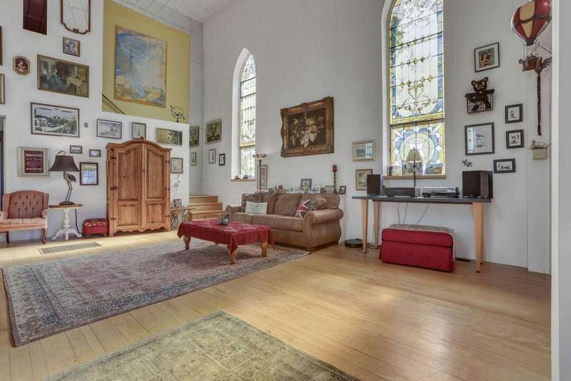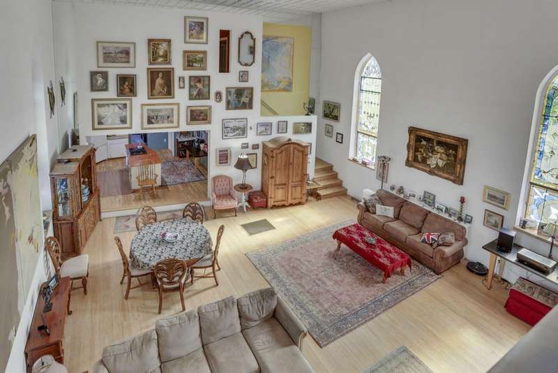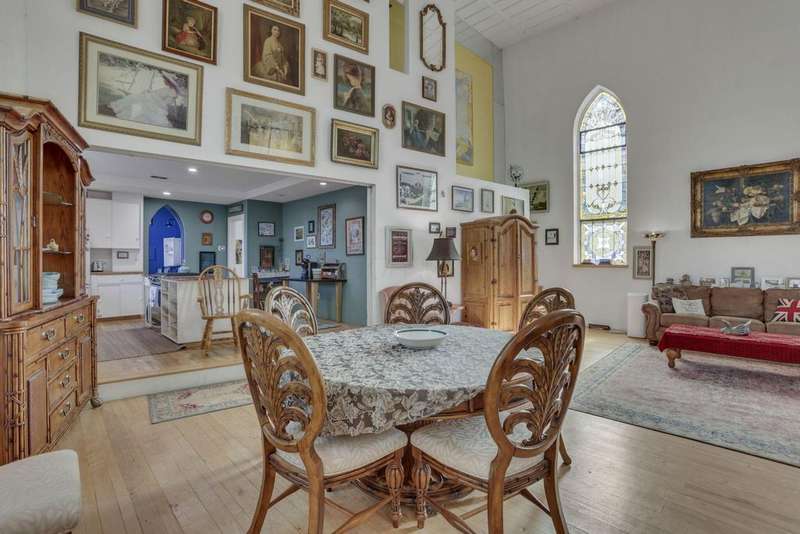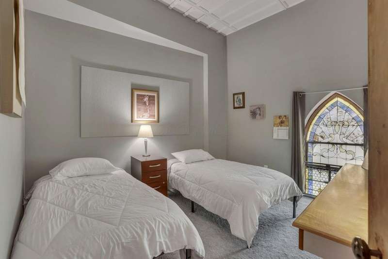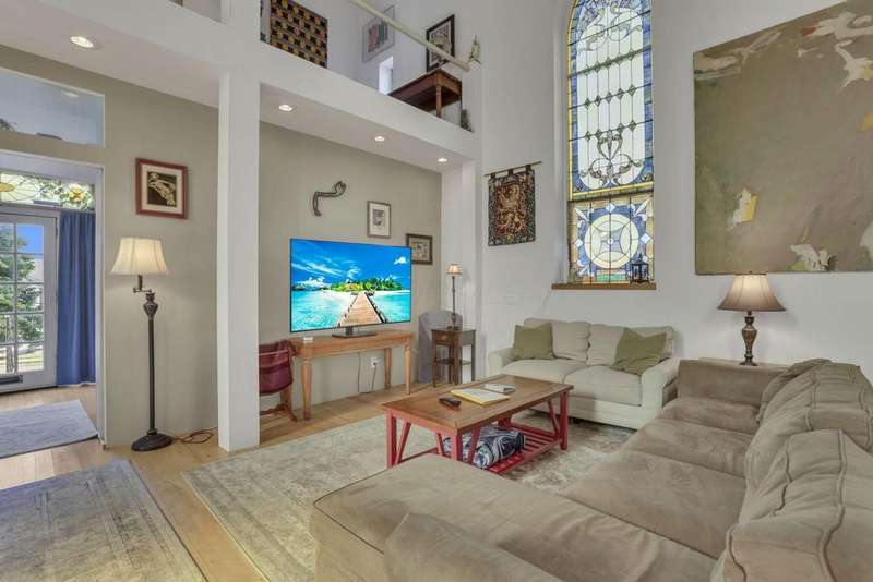 Find your sanctuary in this one-of-a-kind home! Originally build in 1851 as Emmanuel Lutheran Church, later known as the B'Nai Israel synagogue, and is currently a converted private residence. This versatile open-concept design offers 4 bedrooms, 2 full baths, a large kitchen with a walk-in pantry, a generous recreation room complete with pool table. This historical property blends preserved architectural elements with modern living features including gothic stained-glass windows throughout, arched church doors, soaring vaulted ceilings, original hardwoods, and a bell tower. Perfect for artists, musicians, or continue as Airbnb revenue. Minutes from downtown's vibrant art galleries and museums, coffee shops and restaurants. If you're looking for a property with profound history, architectural beauty, and endless creative potential, make your appointment today!