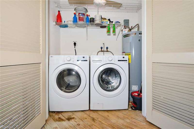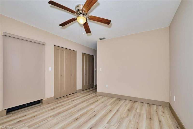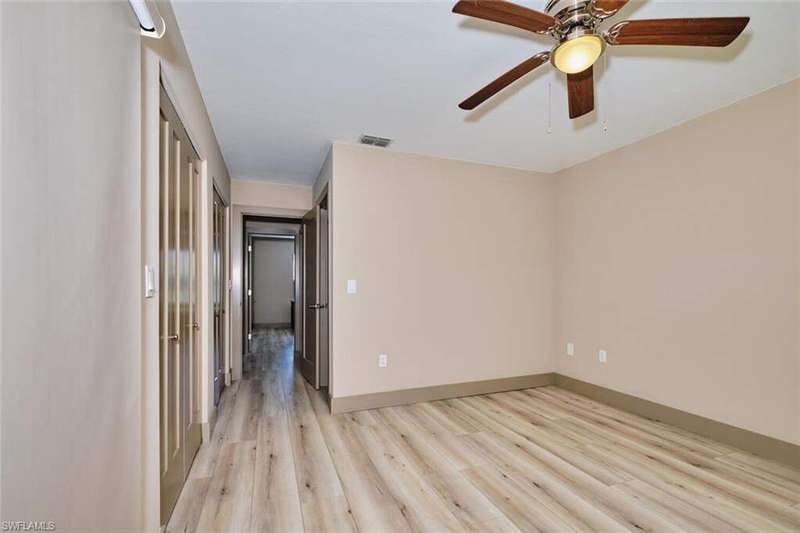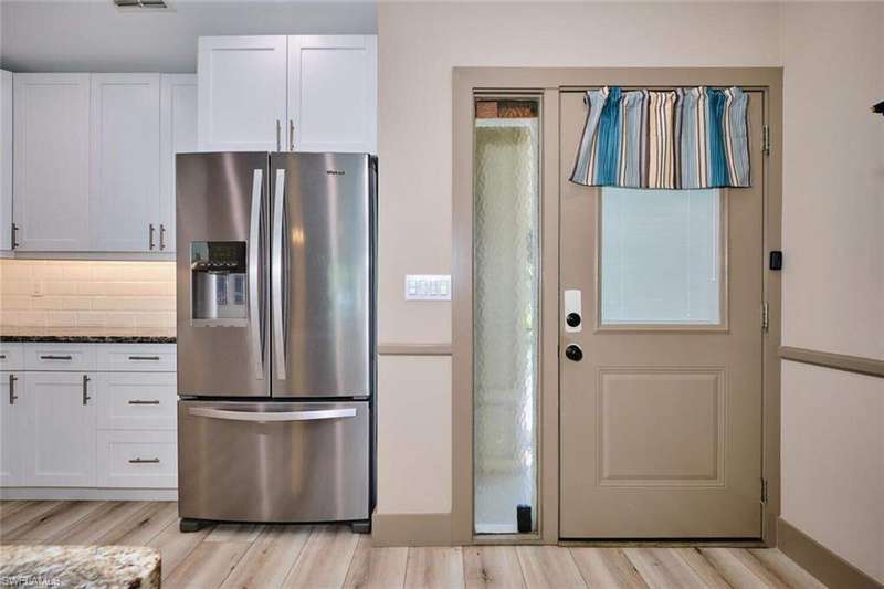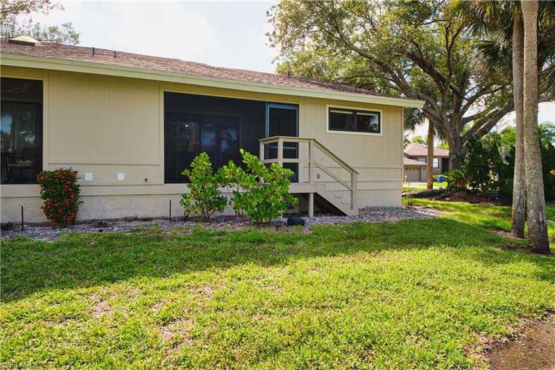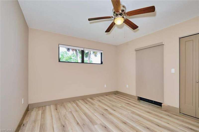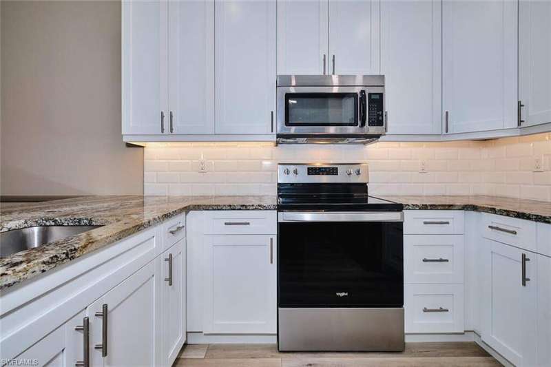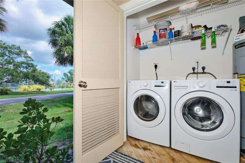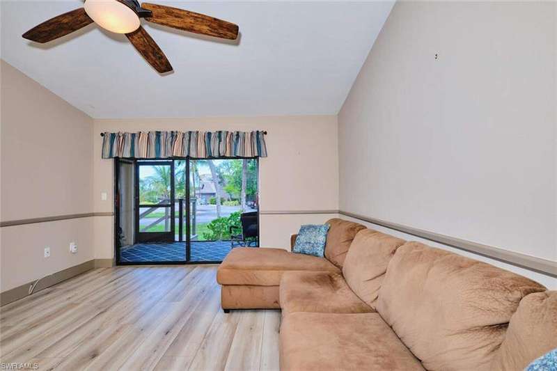 FLOOD INSURANCE PAID BY HOA!!! 1% rate buy down offered by seller to qualified buyer. Beautifully Renovated Villa in Island Park Village II - Move-In Ready! In addition to the flood insurance, the HOA is responsible for the roof for each unit. Welcome to this fully renovated corner-end villa in desirable Island Park Village II, offering 2 spacious bedrooms and 2 bathrooms under air, plus a private one-car garage with driveway. This home is truly like new, featuring a 2023 roof, fresh interior paint, wood-style plank flooring, and vaulted ceilings that create an open, airy feel. The modern kitchen is a showstopper, boasting white shaker cabinets, elegant granite countertops, and new stainless steel appliances. Enjoy convenient in home laundry featuring newer washer and dryer units, just off the lanai. The primary suite and the livingroom features sliding doors that leads to the screened-in lanai, with power blinds, perfect for relaxing or entertaining while overlooking serene views of the lake, pool, and recreation area. Fresh landscaping, corner unit and near the pool and amenities complete the outdoor oasis. Additional upgrades include: New roof 2023 New A/C and water heater Updated modern bathrooms with new vanities, sinks, and fixtures Ceiling fans and lighting fixtures throughout Island Park Village offers resort-style amenities, including a community pool & spa, tennis courts, shuffleboard, pickleball courts, clubhouse, and scenic lakes. Not a 55+ section - open to all ages! Rental policy is two times per year. 2 dogs allowed. Located just minutes from I-75, Gulf Coast Town Center, FGCU, RSW Airport, dining, shopping, and world-class beaches. With LOWEST HOA fees in the community, this villa is a rare find. Don't miss your chance to own a move-in-ready, like-new home in a prime location!