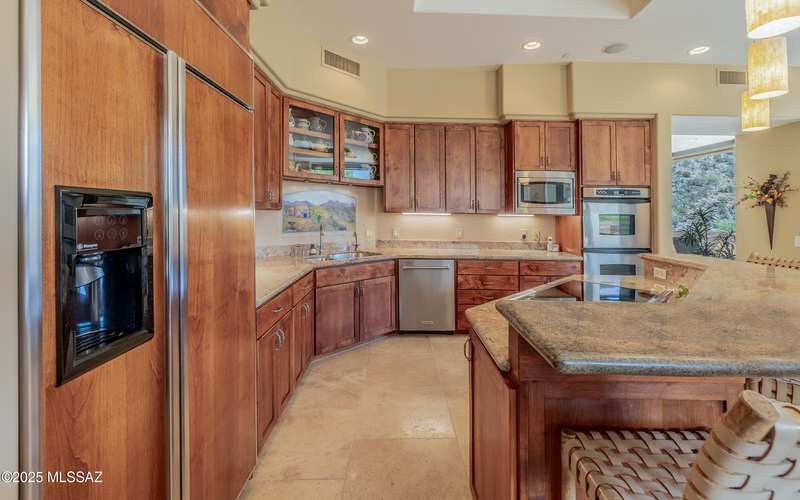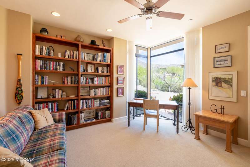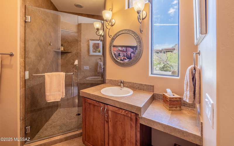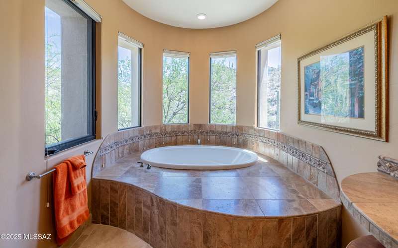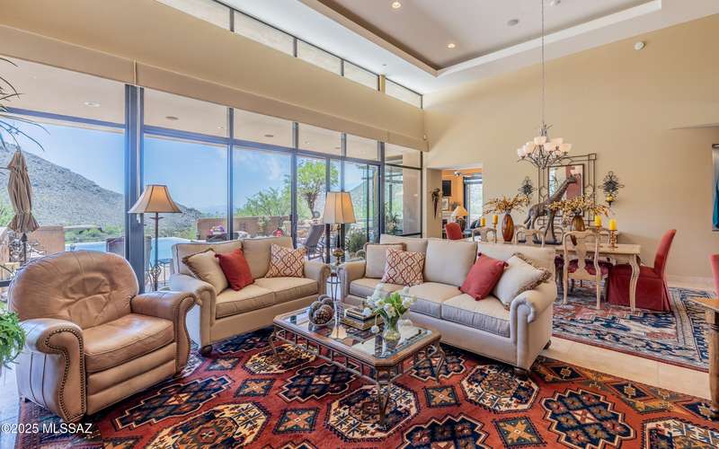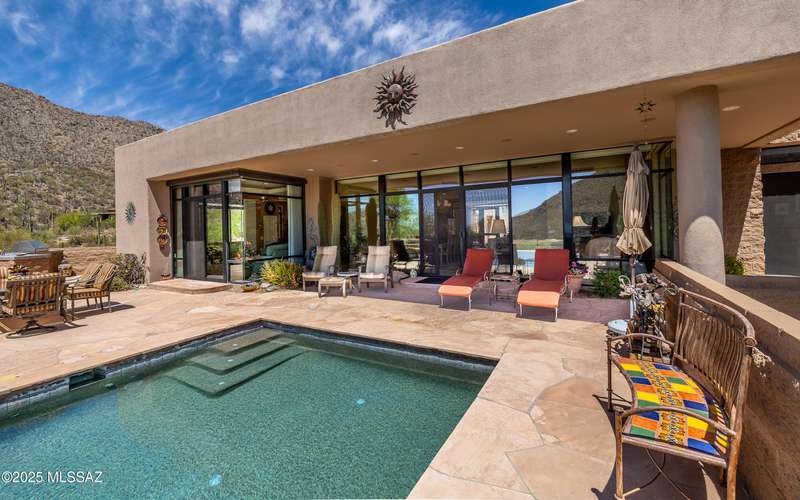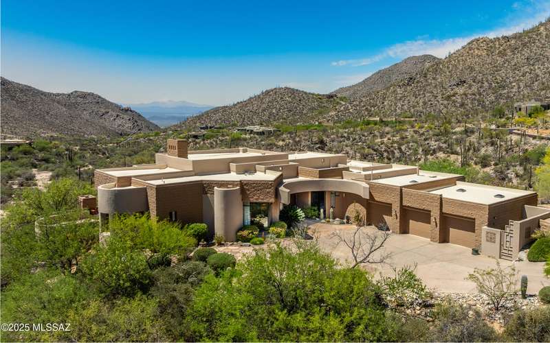 Named ''The Peninsula Homestead'' this custom masonry/stucco Canyon Pass residence sits in complete privacy - alone, surrounded by rock croppings and a natural wash - out on a peninsula of two combined lots - now on 4.8 acres of seclusion. Multiple decks provide panoramic viewing of rocky hillsides and wide, deep wash, mesmerizing canyon views & sunset glowing skies & tinted mountainsides! Enjoy a negative edge pool, private in-ground spa outside primary bedroom that sits out on it's own private peninsula, and wrap-around relaxation & viewing decks for panoramic nature enjoyment. Soaring ceilings, floor to ceiling windows & an oversized 3 car garage w/extra storage rooms. Home is available furnished if desired on separate BOS. Private & stunning location on a very large, quiet lot.