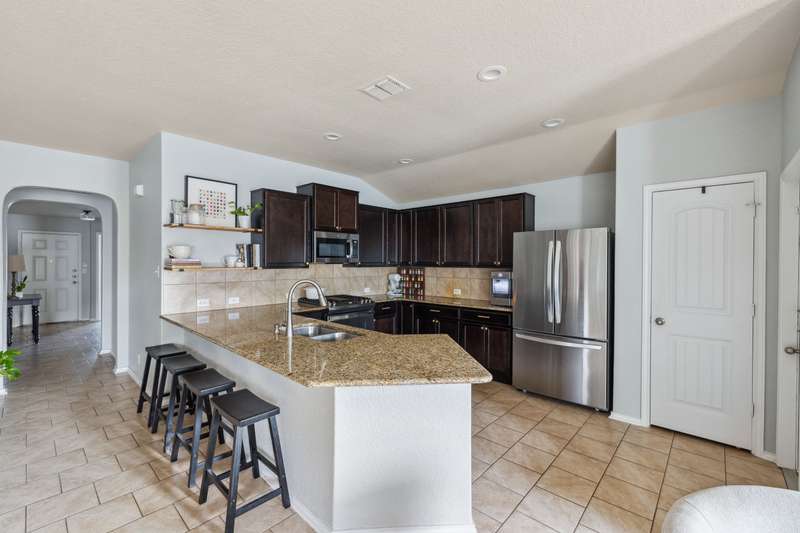 Wow, what a retreat! This single story residence is ready to grace the 'gram! Lovingly styled and updated, enjoy the perks of new construction in an established neighborhood. Showcasing new updates like quartz bathroom countertops, stylish mirrors, new hardware/fixtures, and wallpaper--just bring a toothbrush and you're set. The layout is ideal with guest bedrooms at the entrance to the home, while the primary overlooks the tranquil back yard. The primary suite includes an oversized bedroom, bath with dual sinks, and a massive walk-in closet. Cooking in the kitchen is a breeze--plenty of counter space for baking with loved ones (no issues with elbow room), along with a gas range and eat-in peninsula. The interior laundry room is attached to the two car garage. Outside, in the fully-fenced back yard, an established raised garden bed conveys with the home, along with annually blooming, low-maintenance landscaping. Friendly neighborhood amenities include a greenbelt and playground. The area is convenient for downtown commuters with easy access to I-10, Loop 410, and I-35. See it today! - 10/19/2025 3:15:32 AM