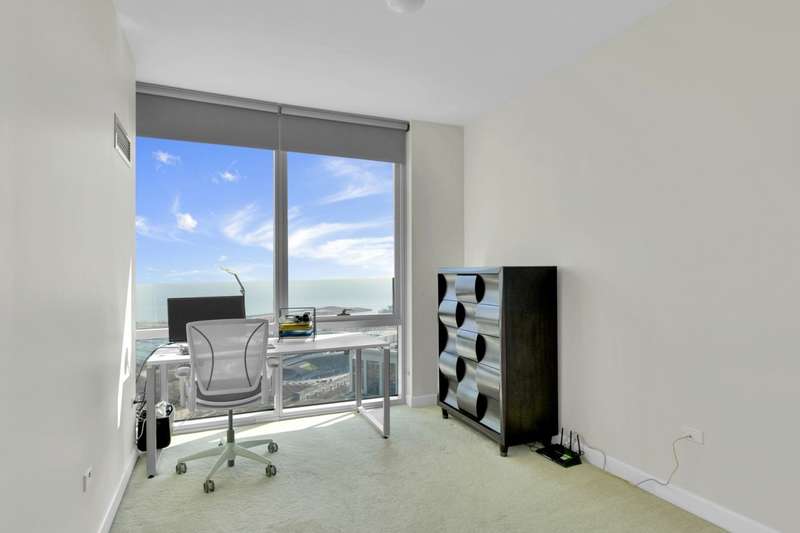LUXURY LIVING FEATURES DRAMATIC LAKE/PARK/CITY VIEWS FROM FLOOR-TO-CEILING WINDOWS & PRIVATE BALCONY ON THE 45TH FLOOR OF THE GRANT, SOUTH LOOPS' PREMIER LUXURY HIGH RISE. PREFERRED SPLIT BEDROOM, OPEN FLOOR PLAN FEATURES MASTER BEDROOM WITH EN-SUITE MARBLE FINISHED BATH WITH WHIRLPOOL/JETTED SOAKING TUB, DOUBLE VANITY; & WALK-IN CLOSET. NUMEROUS UPGRADES FEATURE HARDWOOD FLOORS AND A CHEFS KITCHEN WITH 42 INCH CABINETS, HIGH END STAINLESS STEEL APPLIANCES, GRANITE COUNTERTOPS. CUSTOM PAINT & CUSTOM ROLLER SHADES & BLINDS. PRIVATE BALCONY WITH PANORAMIC VIEWS! THE GRANT IS A FULL AMENITY LUXURY BUILDING WITH 24-HOUR DOOR STAFF, CONCIERGE, FITNESS CENTER (WITH STATE-OF-THE-ART EQUIPMENT), INDOOR POOL WITH HOT TUB, SUNDECK W/ GAS GRILLS, MASSIVE PARTY ROOM, BUSINESS CENTER, CHILDRENS PLAYROOM, THEATER/MEDIA ROOM. UNBEATABLE SOUTH LOOP LOCATION STEPS TO THE LAKEFRONT/GRANT PARK/MILLENNIUM PARK/MUSEUM CAMPUS/LOOP/RESTAURANTS/SHOPPING/GROCERIES/PUBLIC TRANSPORTATION AND ALL THE BEST OF EVERYTHING THAT THE SOUTH LOOP HAS TO OFFER! RENT INCLUDES BUILDING AMENITIES AND ALL UTILITIES EXCEPT ELECTRIC! PRIME HEATED GARAGE PARKING SPACE IS STEPS OFF THE ELEVATOR AND IS $250/MONTH ADDITIONAL.