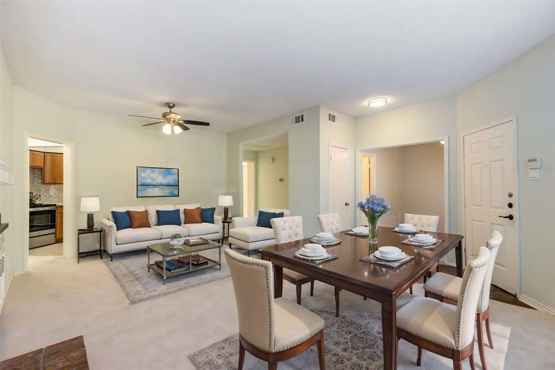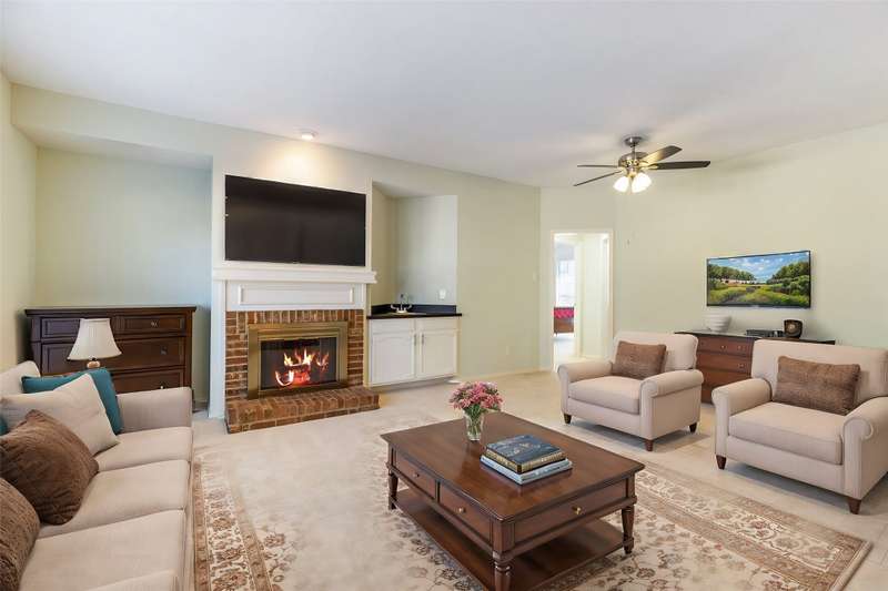 Now offering Seller Concession of up to $5,000 for Buyer's closing costs. Refreshed and updated condo, ground floor, ready for move-in. New HVAC, electrical panel, jetted spa walk-in tub, updated kitchen and appliances, pull-out pots and pan drawers, all this and a great view of pool. Make your plans to BBQ on the patio and take a dip in the pool this summer. Open family room with space for dining table. Enjoy winter evenings with wood-burning fireplace and entertain from the wet bar. Great wall of windows with natural light for summer reading. Patio is accessible from two of the three bedrooms and overlooks community pool. Relax in the renovated primary bath with jetted tub, new vanity, tile floor, and two closets. Split plan with two secondary bedrooms - one was used as an office. Each bedroom has vanity and is joined by the bathroom. New GE refrigerator, new LG washer and clothes dryer are negotiable! This location has so much to offer and with confidence of new kitchen appliances, new electrical panel and new HVAC, you can sleep well in your new condo in the heart of Plano. This property will not last long, make your appointment now. Water heater 2023. Single car garage included. HOA dues cover pool, clubhouse, structure insurance, water, sewer and trash. HOA documents available for review. Property has been appraised.