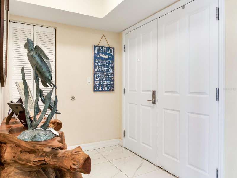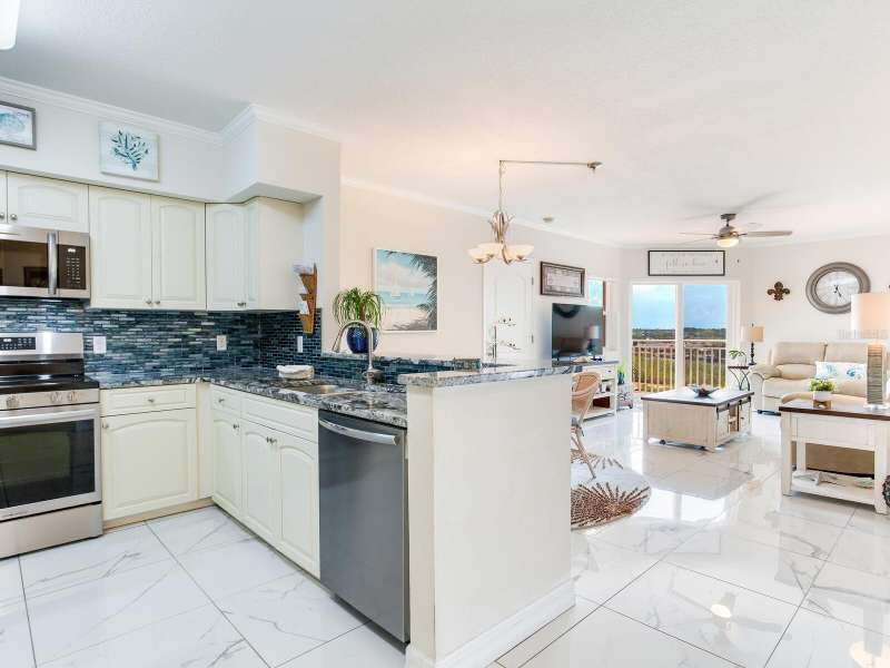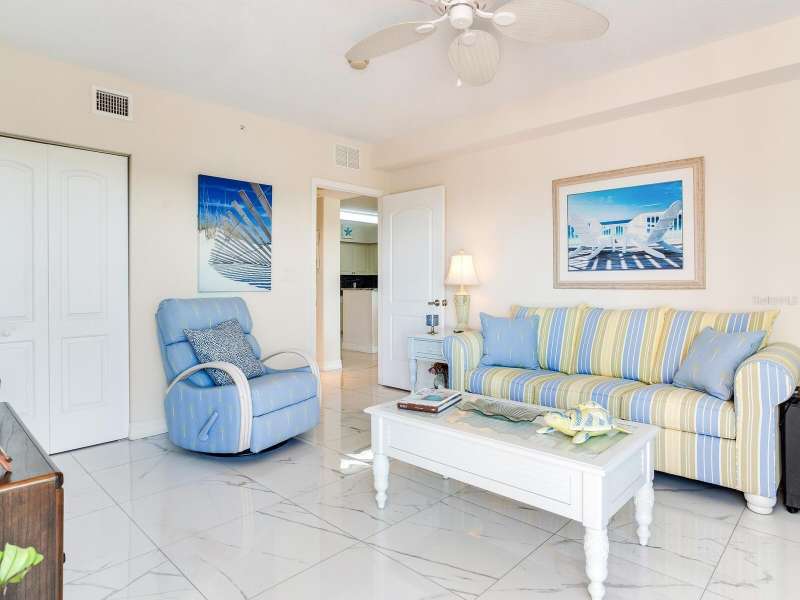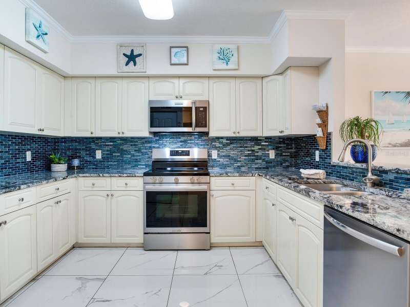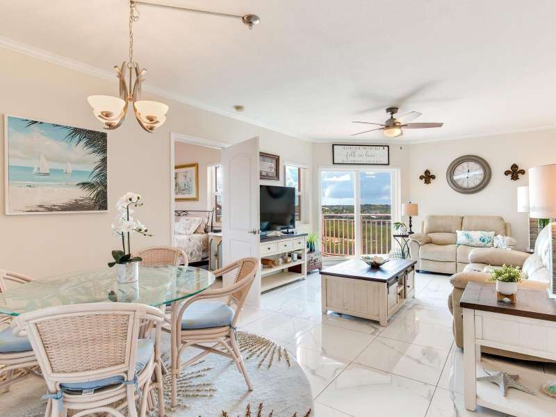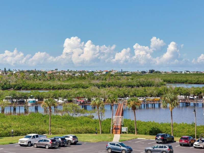 Experience Breathtaking Sunsets from Three Private Balconies in this Gorgeous 2-Bedroom, 2-Bath End Unit on the South Side of Seaview Place! Welcome to Seaview Place, a beautifully maintained, hurricane-rated (2008) coastal retreat located in the highly sought-after community of Gulf Harbors. This stunning corner unit is perfectly positioned on the desirable south side of the building, offering extra privacy, incredible natural light, and panoramic water views from every angle. Step through grand double doors into an elegant foyer and discover a spacious, light-filled great room floor plan with beautiful new ceramic tile flooring throughout and crown molding in great room. The separate dining area and sliding glass doors lead out to one of three private balconies, creating a seamless indoor-outdoor living experience that’s perfect for entertaining or simply unwinding by the sea. Three Balconies, Three Unique Views: • East Balcony: Watch stunning sunrises and catch evening rocket launches from Cape Canaveral, all from the comfort of home. • South Balcony: Take in peaceful views of the deep-water canals and the upscale homes of Gulf Harbors. • Southwest Balcony: Relax with breathtaking sunsets and direct views of the marina located on the property. The spacious kitchen is ideal for entertaining, featuring newer stainless steel appliances (just two years old), a breakfast bar, pantry, and ample counter space. The luxurious primary suite offers a private balcony, a large walk-in closet, and a spa-like bath with dual granite-topped vanities and a garden tub. Guests will enjoy their own private retreat with a spacious guest bedroom, complete with a private balcony and a large walk-in closet. This pet-friendly end unit also includes extra storage, proximity to the fitness center (just four doors away), and access to the rooftop viewing deck—the perfect place to watch Gulf sunsets and holiday fireworks light up the night sky. Resort-Style Amenities at Seaview Place Include: • On-site management & card-key security • Heated pool & jacuzzi • Rooftop sundeck with Gulf views • Fitness center, aerobics room & saunas • Full-service business center with conference room, library & fax access • Clubhouse with a large TV, baby grand piano, pool table, serving kitchen, and open terrace • Beautifully landscaped grounds • Direct access to the scenic Robert Crown Wilderness Area • Close proximity to shopping, parks, and all that the Florida lifestyle has to offer. Optional membership to the Gulf Harbors Beach Club provides exclusive, resident-only access to a peaceful, private beach on the Gulf of Mexico, perfect for sunset strolls and making lasting memories by the sea. Whether you’re seeking a tranquil getaway or a year-round residence, this exceptional property offers the perfect blend of luxury, location, and lifestyle.