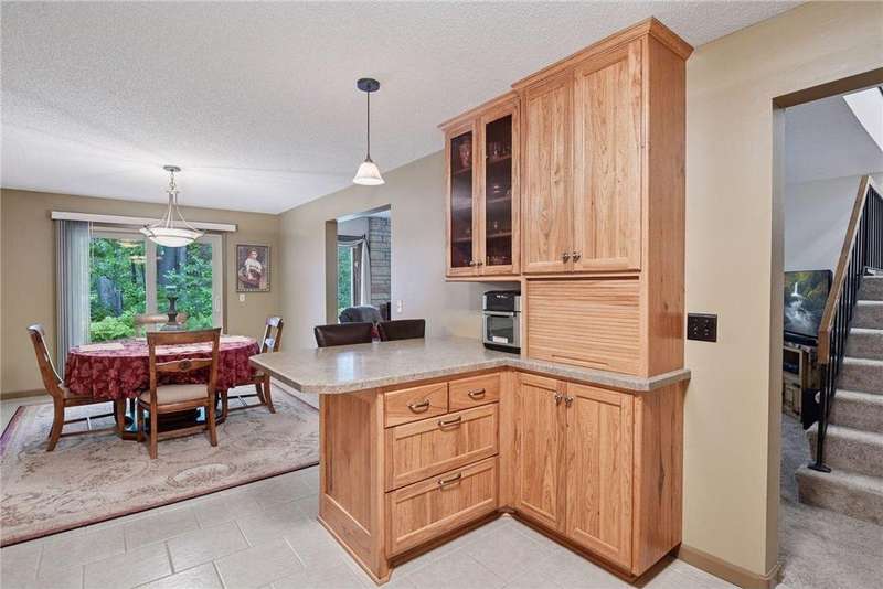 Welcome to this beautifully updated 3 bedroom, 2 bathroom townhome nestled in the highly sought-after Chelsea Woods Association in Plymouth. With modern updates throughout, this spacious 3-level home offers comfortable living in a serene, nature-filled setting. The main level features an open-concept kitchen with stunning custom alder cabinetry and dining area with stylish finishes and ample natural light, perfect for entertaining. Step through sliding doors to a private patio that opens directly onto a peaceful wooded trail system-ideal for morning coffee or evening strolls. Cozy family room with gas fireplace adorned with stone front rounds out the space. Upstairs you'll find generously sized bedrooms with plenty of closet space as well as full bathroom and built in sauna. Primary bedroom with ensuite is currently being used as an office. Chelsea Woods offers a low-maintenance lifestyle with fantastic amenities including multiple pools, tennis and pickleball courts, a basketball court and scenic walking trails-all just minutes from Parker's Lake, the Luce Line Trail, and the charming shops and restaurants of Wayzata and Plymouth. This thoughtfully updated home offers comfort, privacy and community in a great Plymouth location. Welcome home!