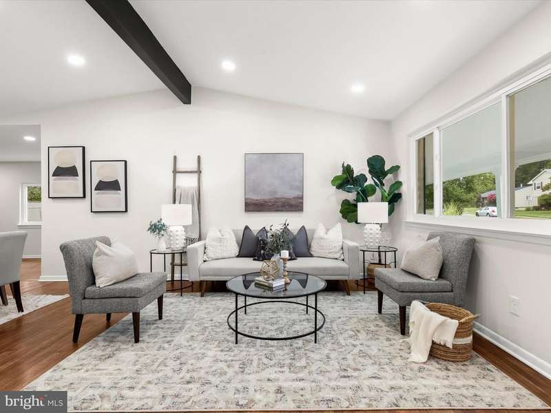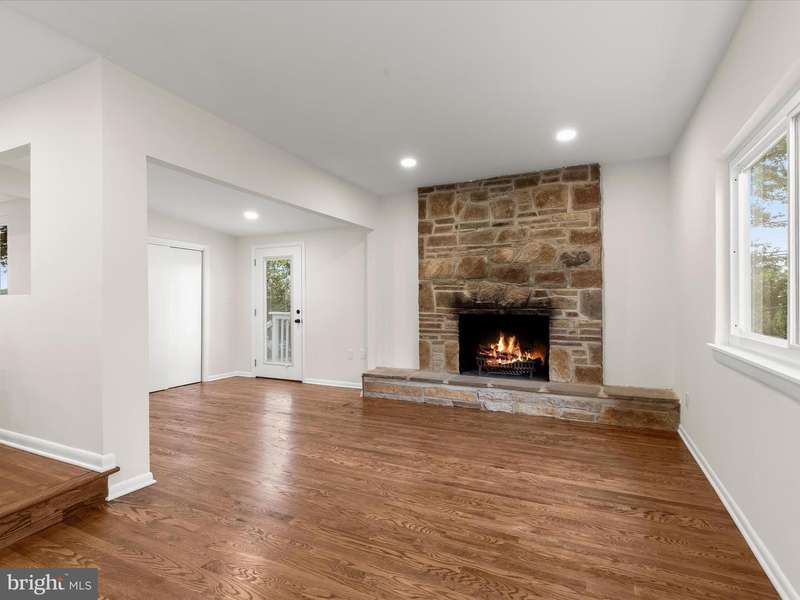 Introducing this fully updated home offering five bedrooms and three full bathrooms spread across two finished levels of thoughtfully designed living space. An inviting covered front porch sets a warm tone upon arrival. Renovated throughout, this home showcases modern upgrades paired with a neutral color palette. The open-concept main level features hardwood floors throughout, with soaring cathedral ceilings. The front living room welcomes you inside, with an adjacent dining area. A stylish kitchen boasts stainless steel appliances, quartz countertops, an island with seating, penny round mosaic tile backsplash, and soft-close shaker cabinets. Just beyond, the family room highlights a wood-burning fireplace with a stone surround, along with access outside. The main level hosts the primary bedroom with an ensuite bathroom that includes a walk-in shower. Another two bedrooms with a shared full bathroom complete the main level. Downstairs, the finished lower level further expands the living space with a recreation room, two additional bedrooms, and a third full bathroom. Outdoor living is enhanced by a spacious backyard with a patio, perfect for relaxing or entertaining outside. Note: the glass shower door in primary bathroom will be installed.